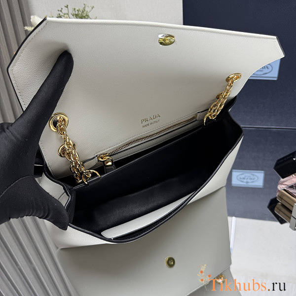 Prada Cleo Brushed Leather White Shoulder Bag 27x18x4cm
