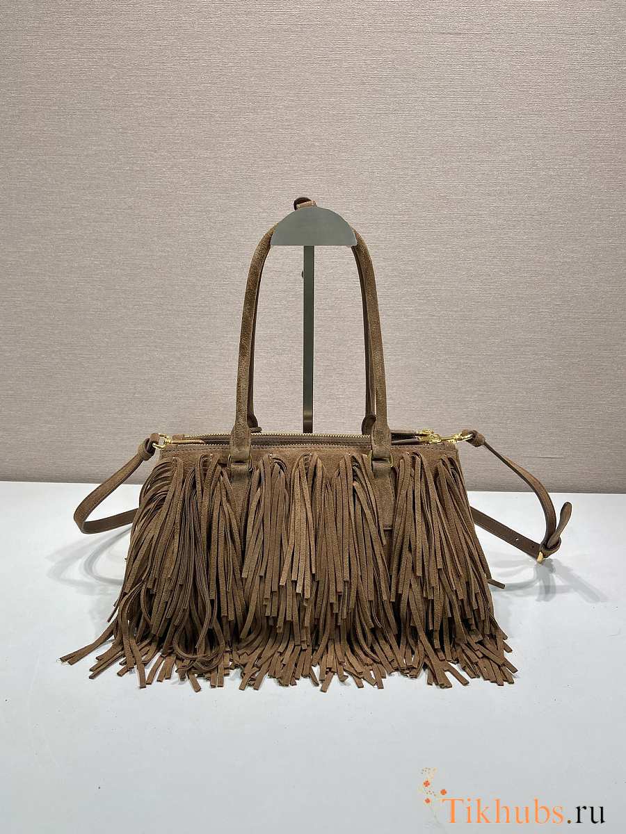 Prada Galleria Medium Suede Bag with Fringe 30x14x10.5cm