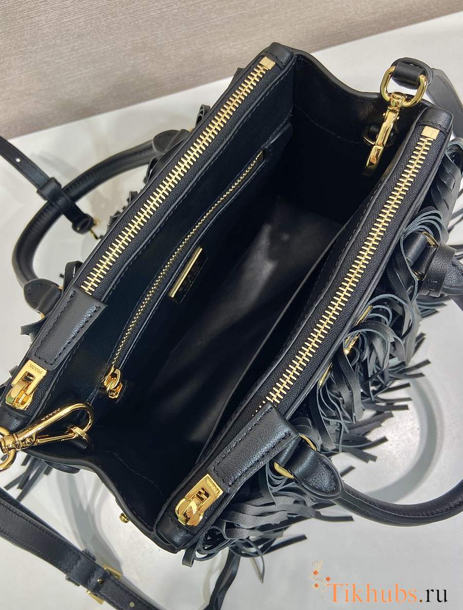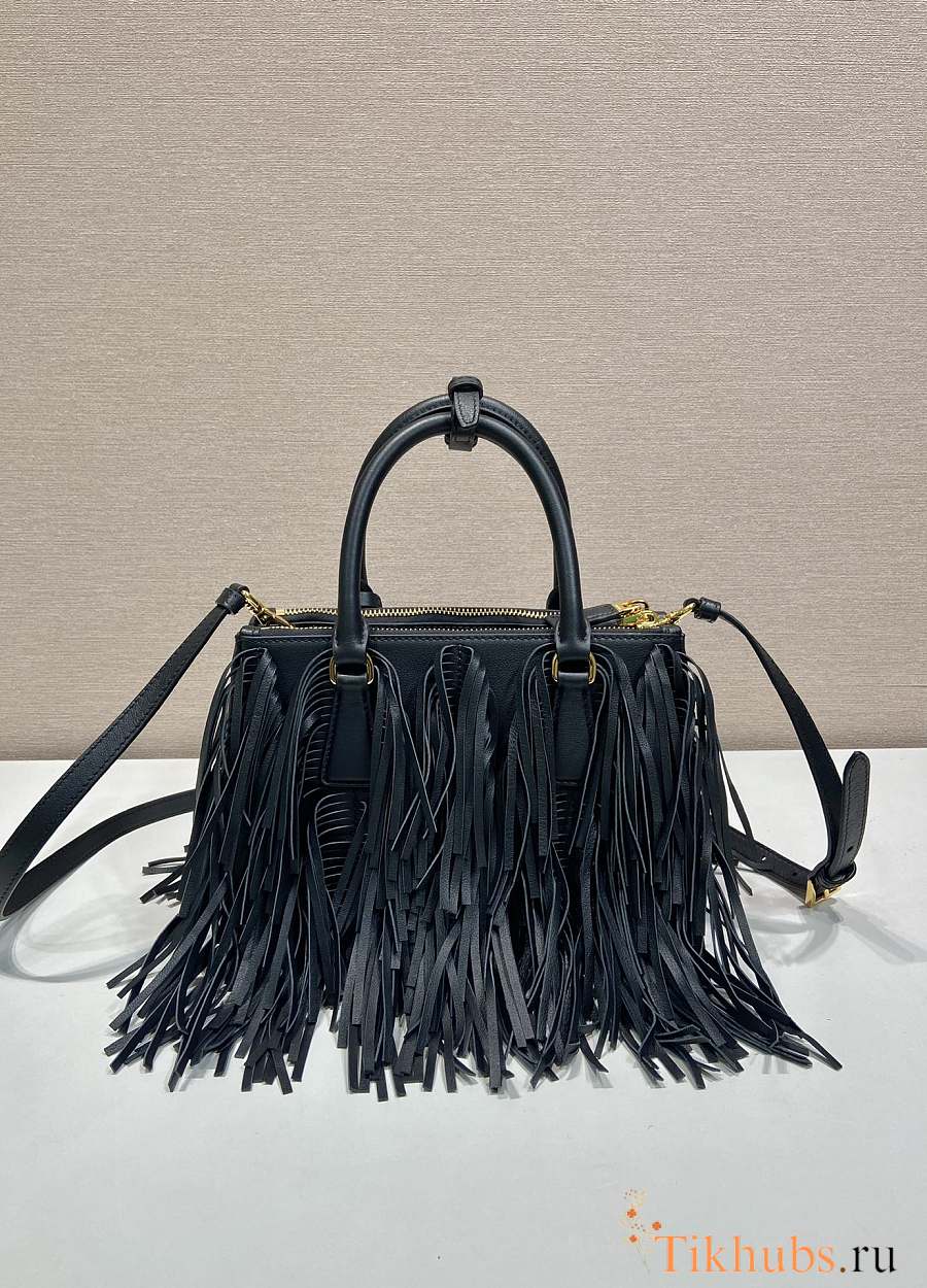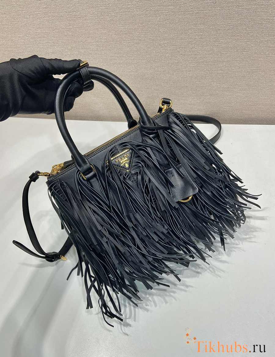 Prada Galleria Small Leather Bag Fringes Black 24.5x18.5x11cm