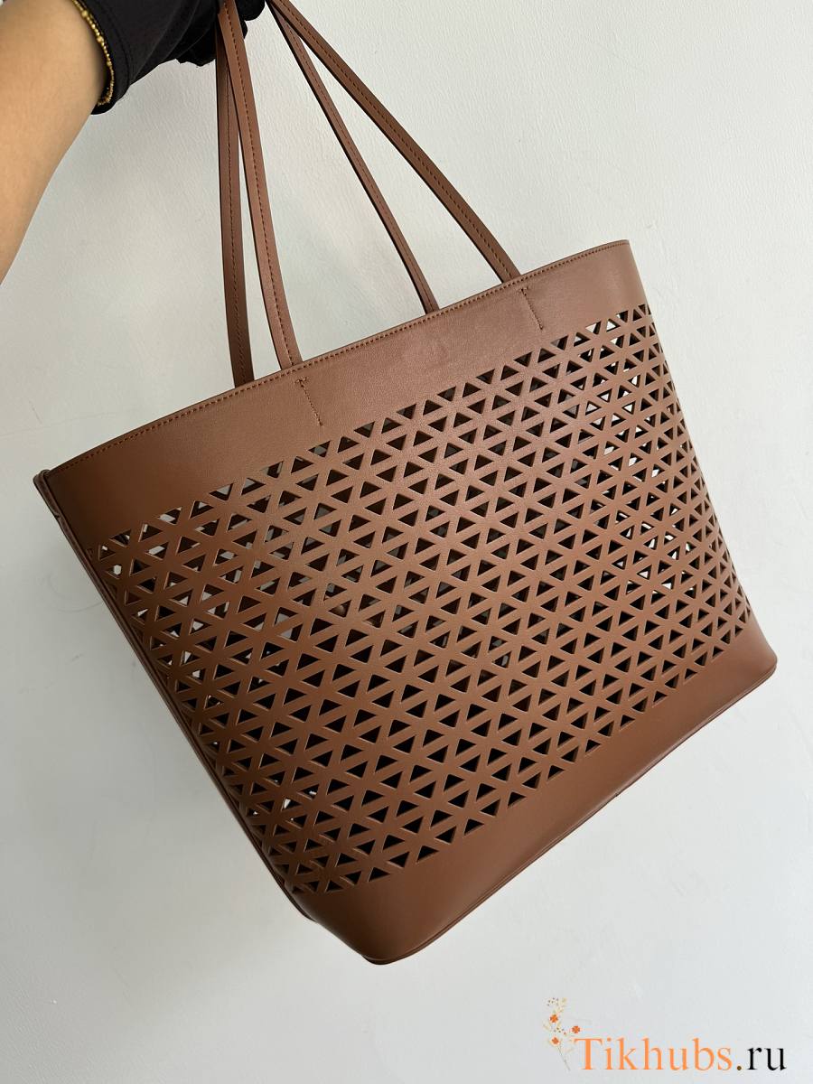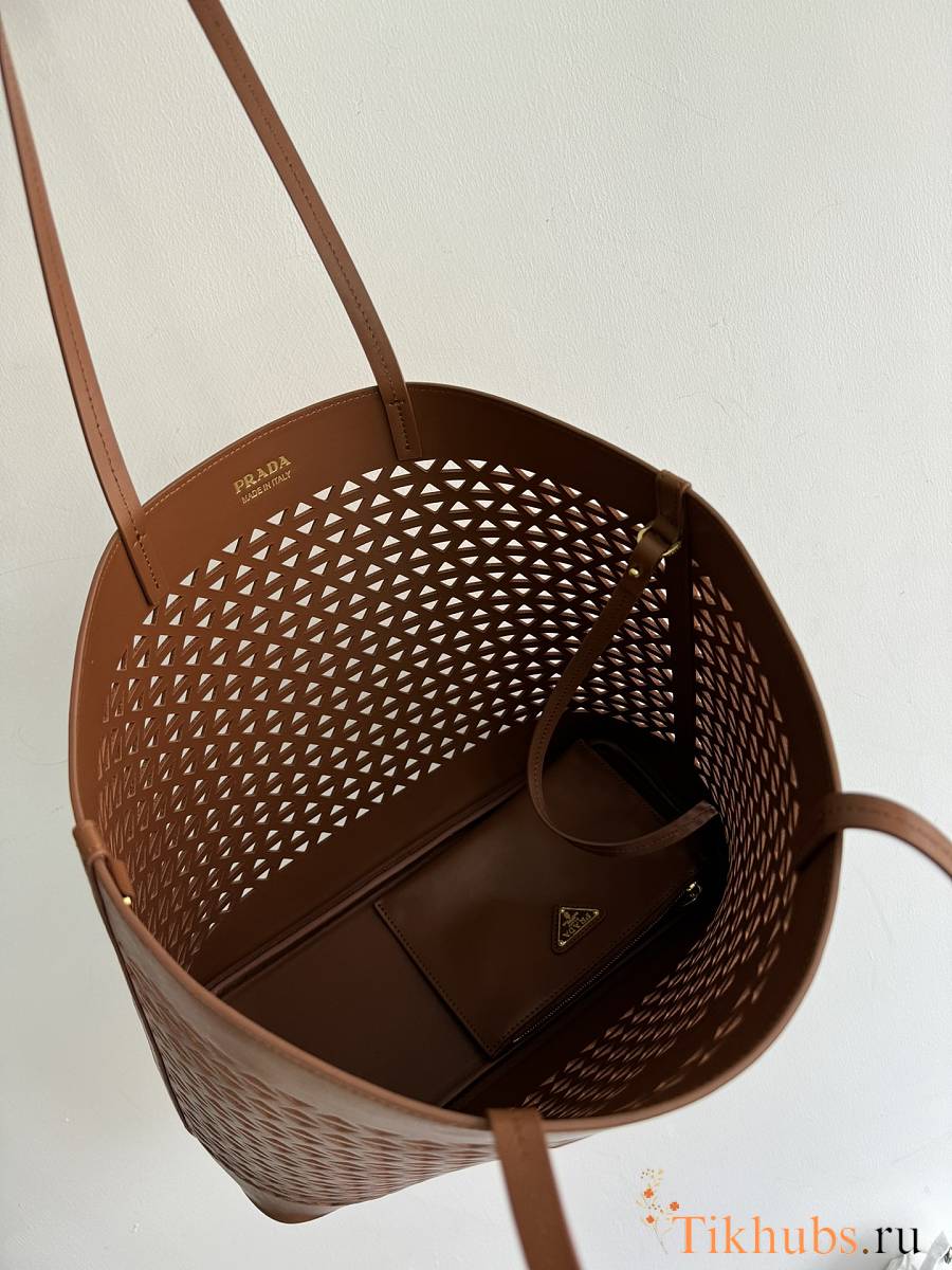 Prada Large Perforated Leather Tote Bag Brown 32x29x13cm