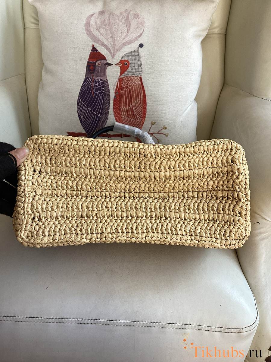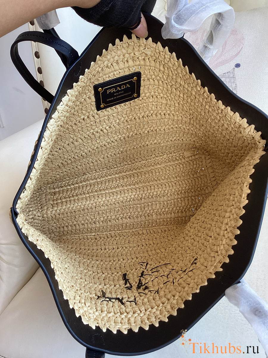 Prada Medium Crochet Leather Tote Bag Tan/Black 32x29x16cm