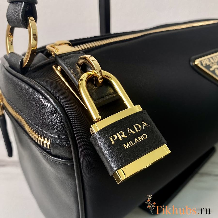 Prada Medium Re-Nylon Leather shoulder Bag Black 27x12x10.5cm