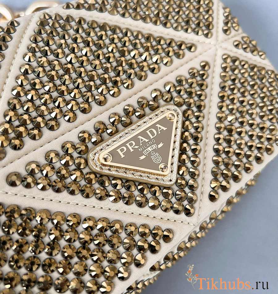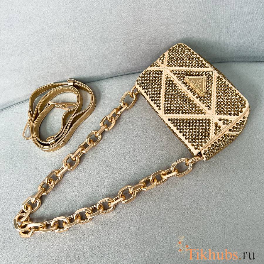 Prada Mini Crystal Triangle Gold Shoulder Bag 17x11.5x6cm