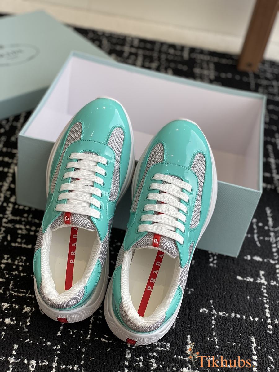 Prada Patent Technical Fabric Green Sneakers