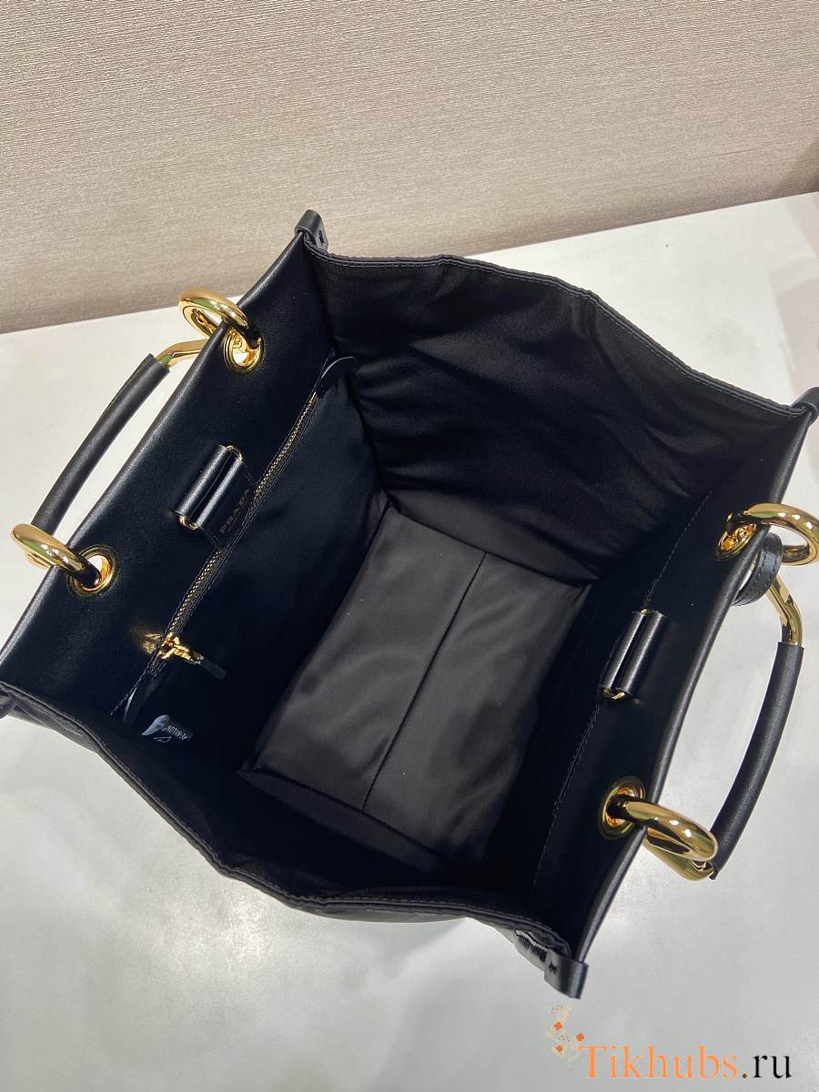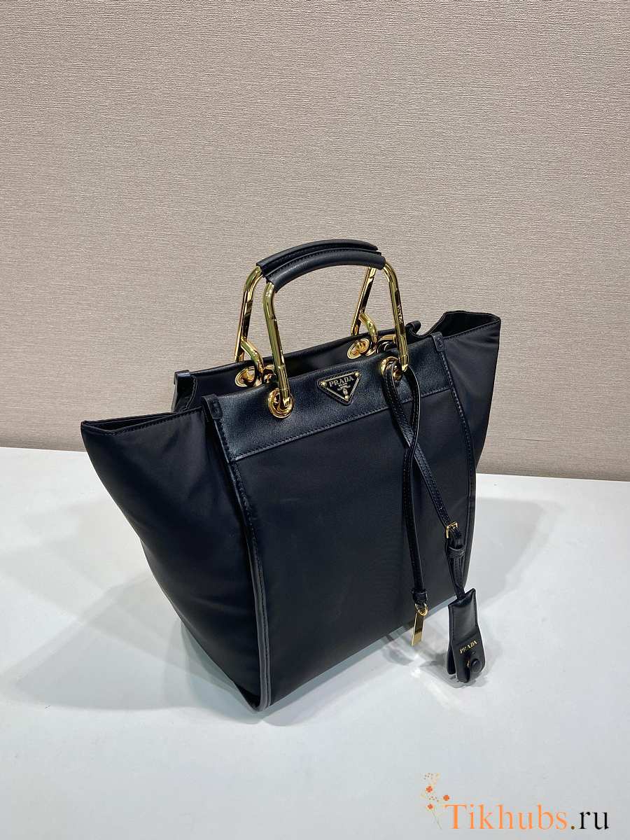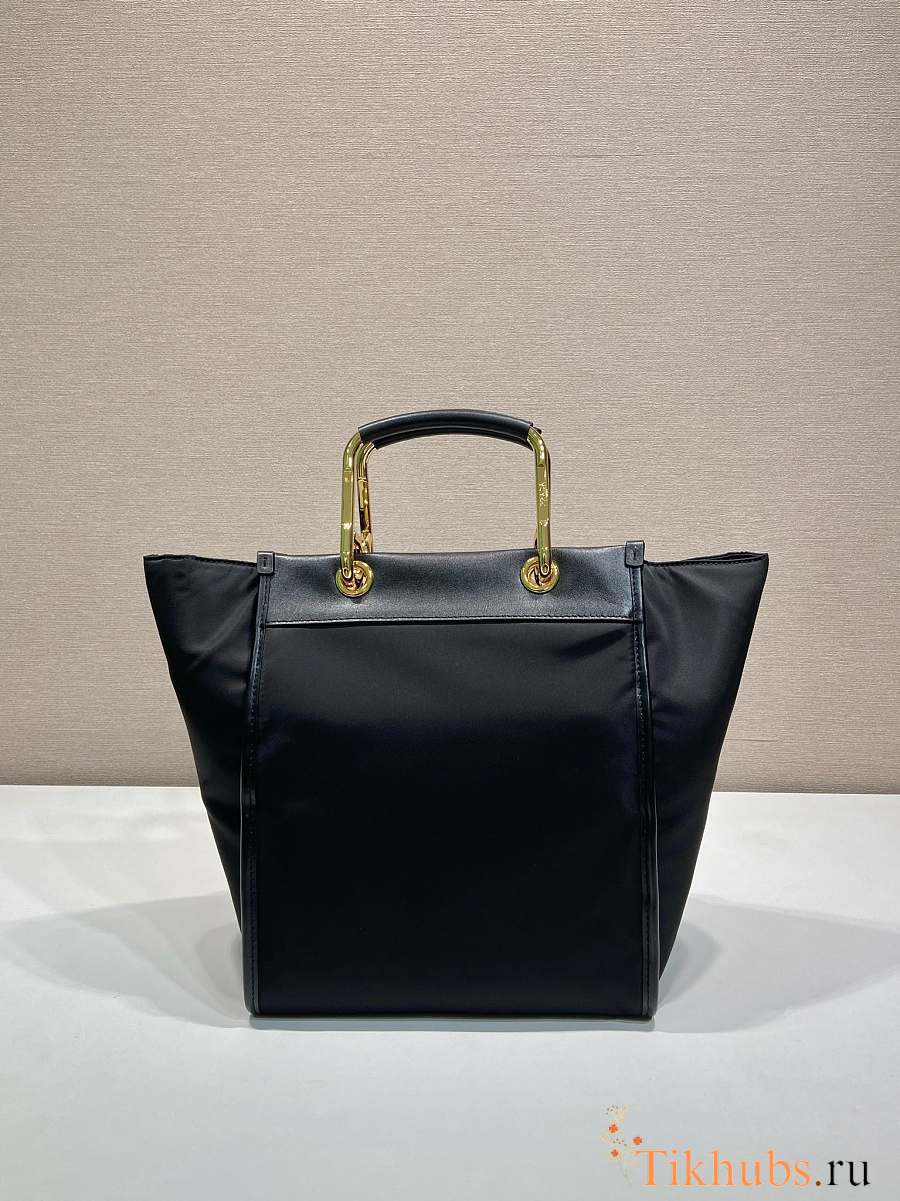 Prada Re-Nylon Leather Tote Bag Black 23x28.5x15cm