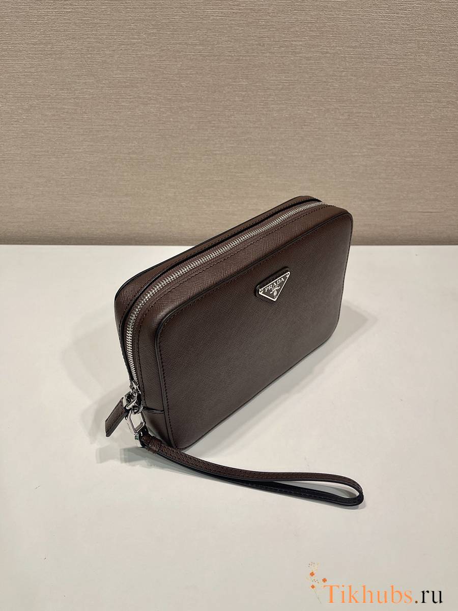 Prada Saffiano Leather Clutch Coffee 23.5x15.5x4cm