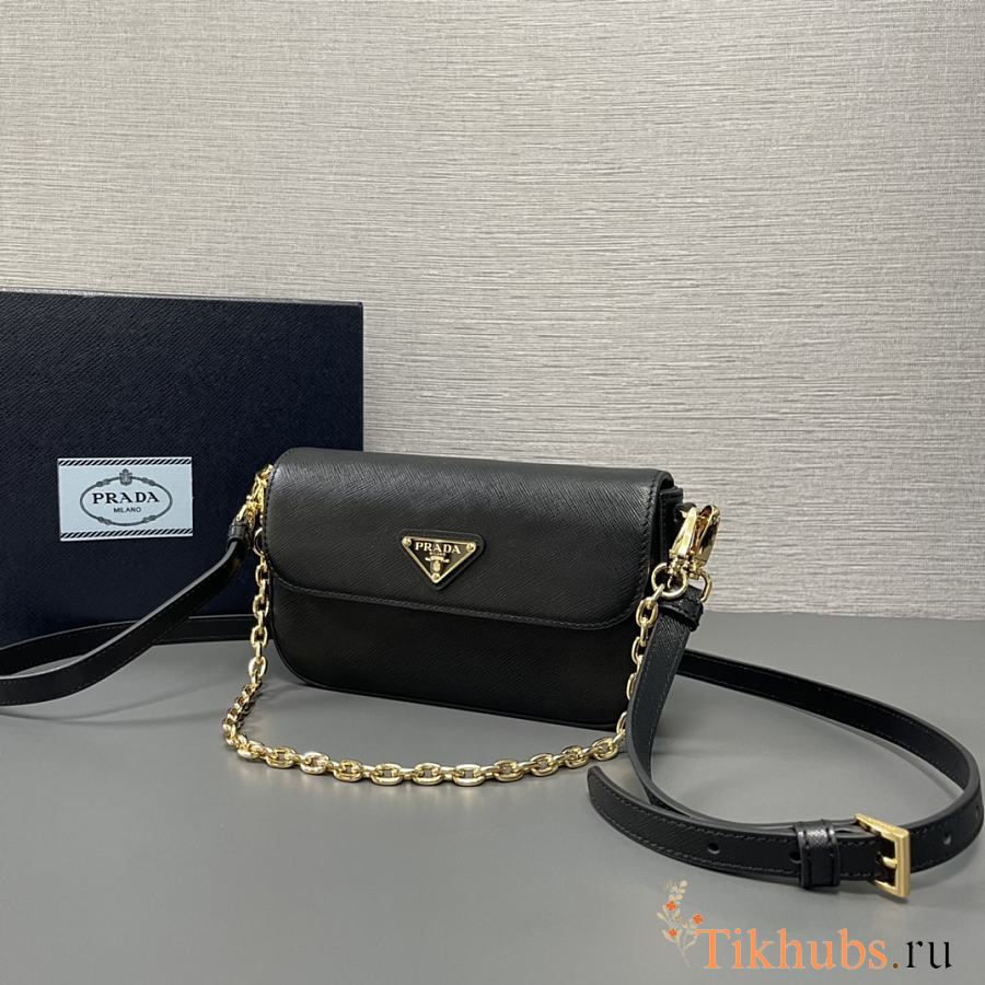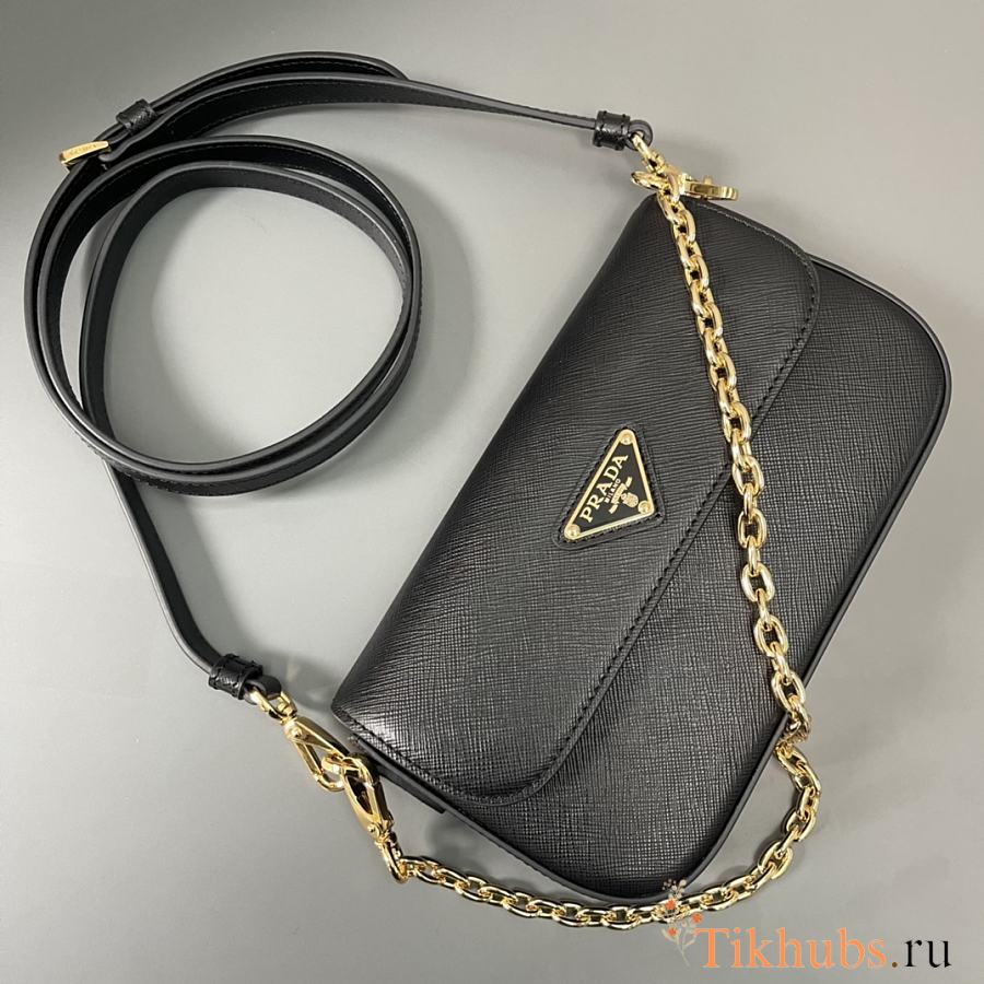 Prada Saffiano Leather Mini Flap Bag Black 20.5x10.5x4cm