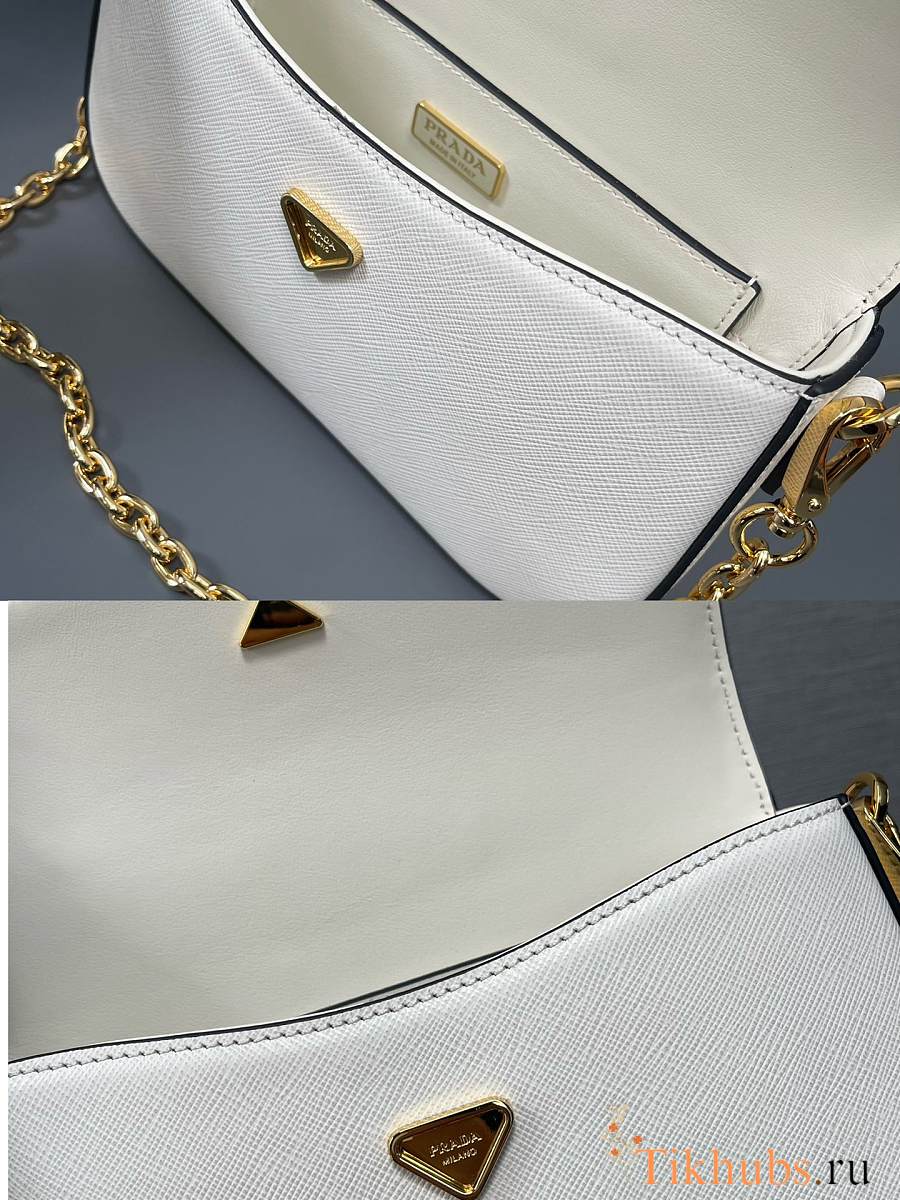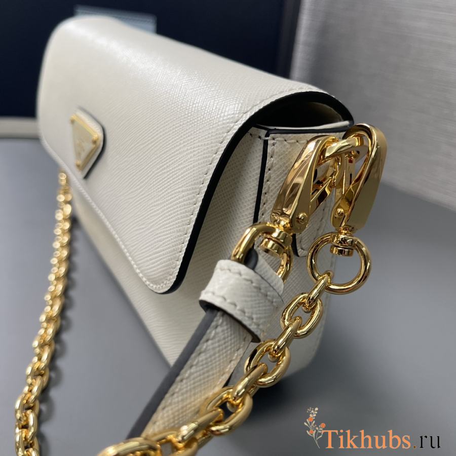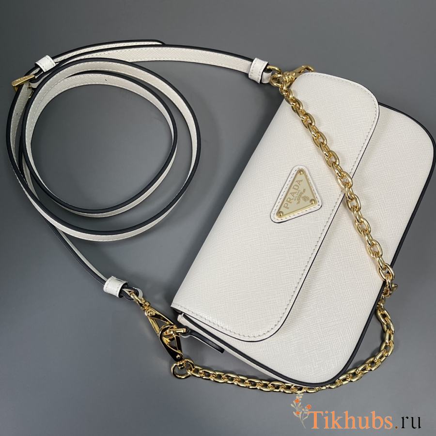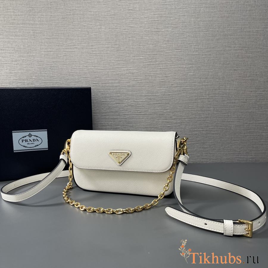 Prada Saffiano Leather Mini Flap Bag White 20.5x10.5x4cm