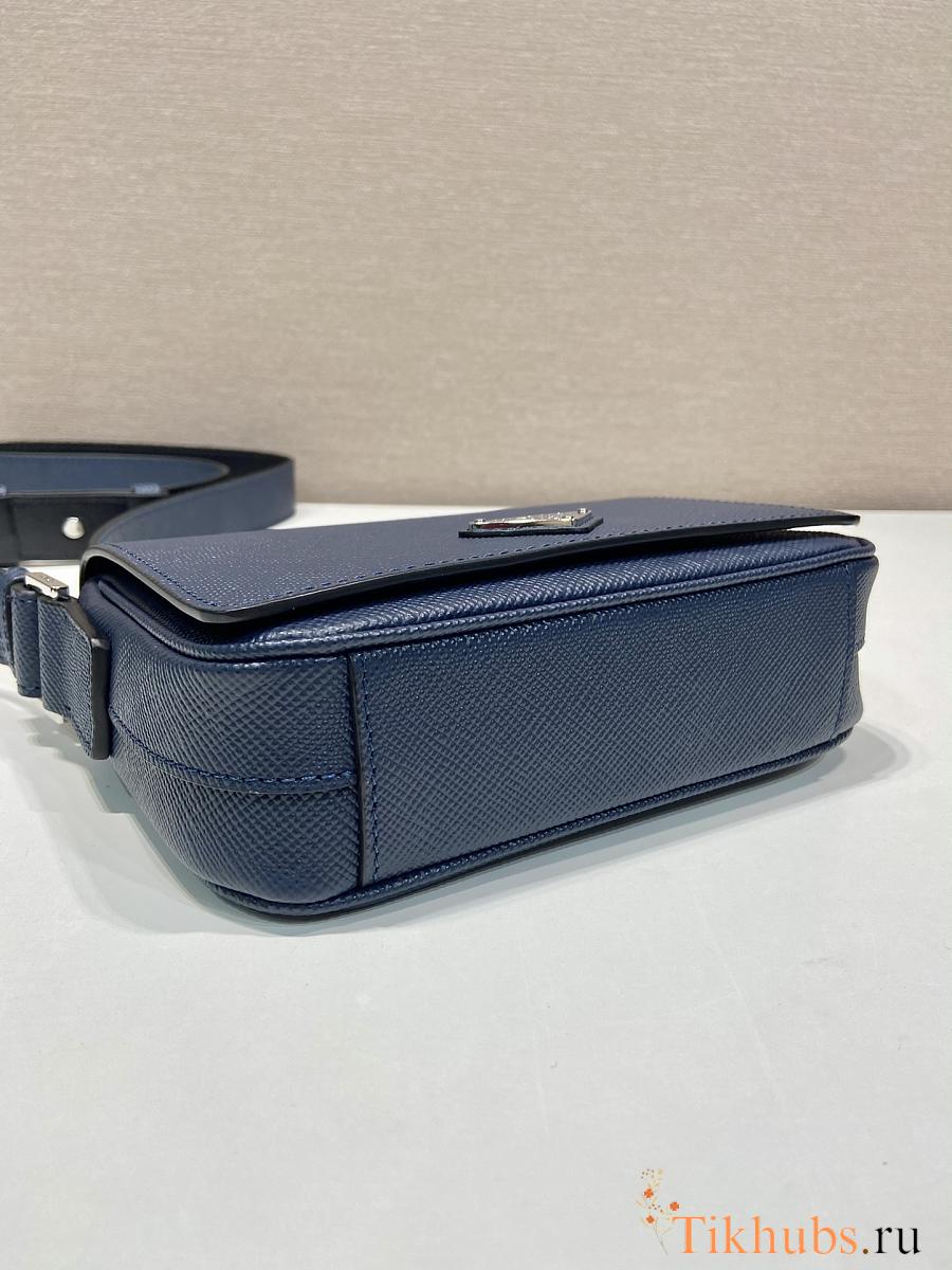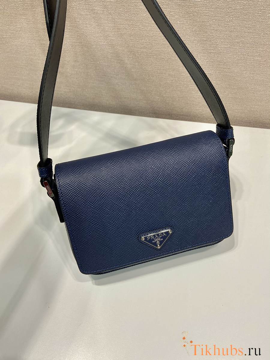Prada Saffiano Leather Shoulder Bag Blue 19x13x5cm
