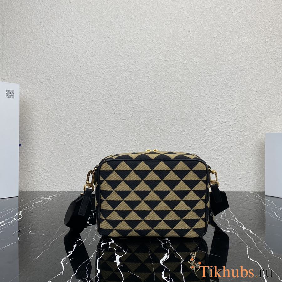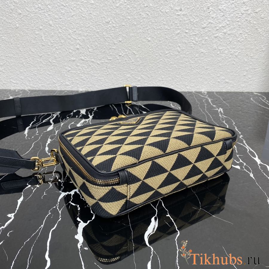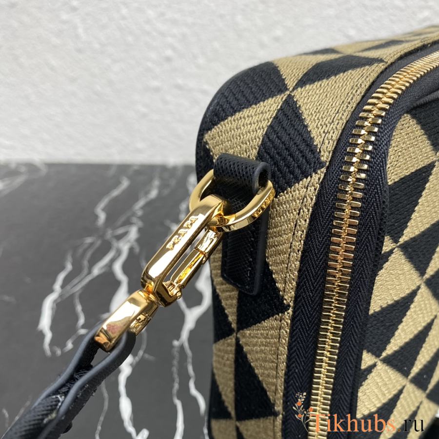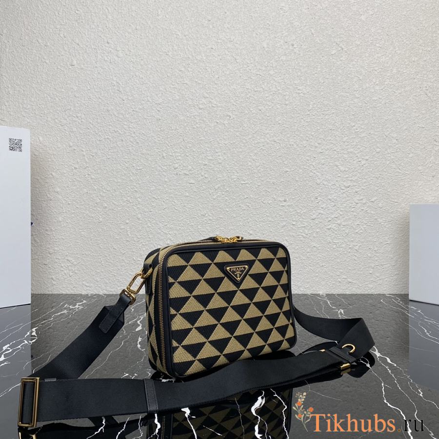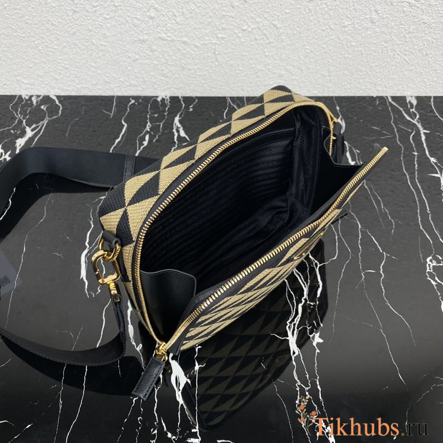 Prada Symbol Embroidered Fabric Bag Black Beige 22x16x6cm