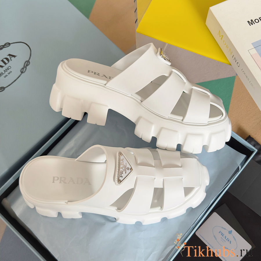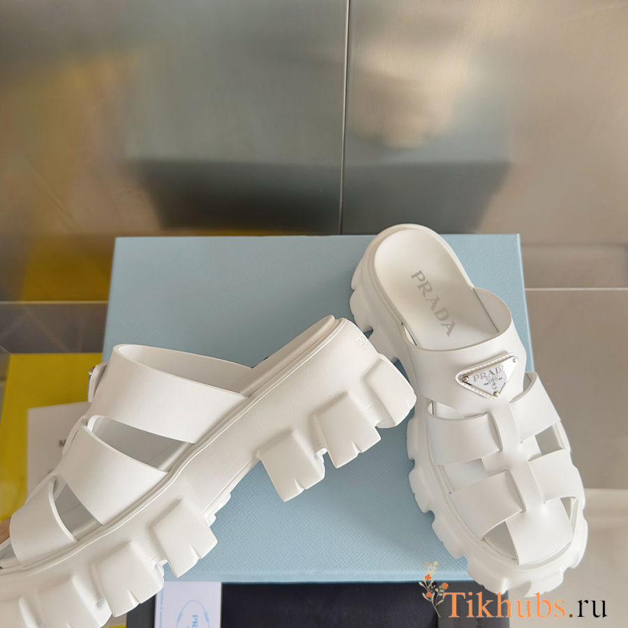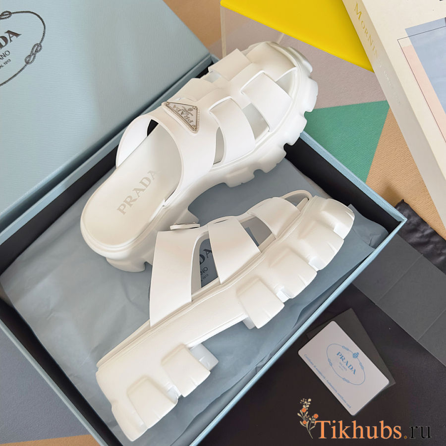 Prada White Rubber Monolith Slides