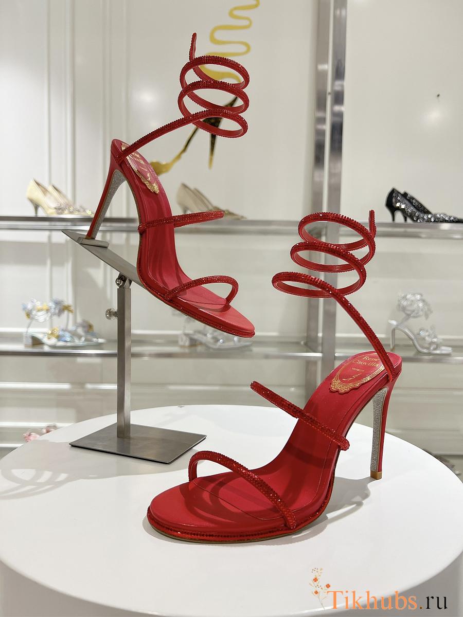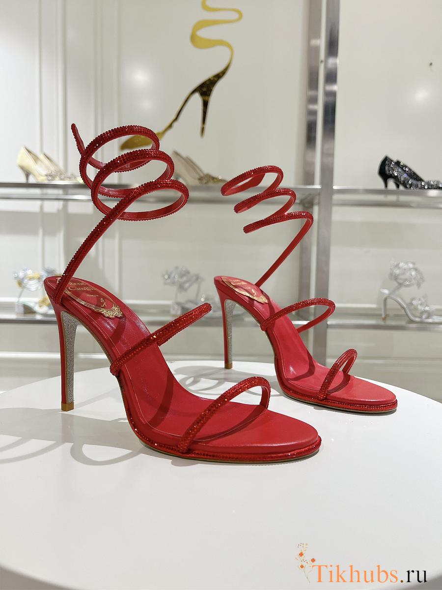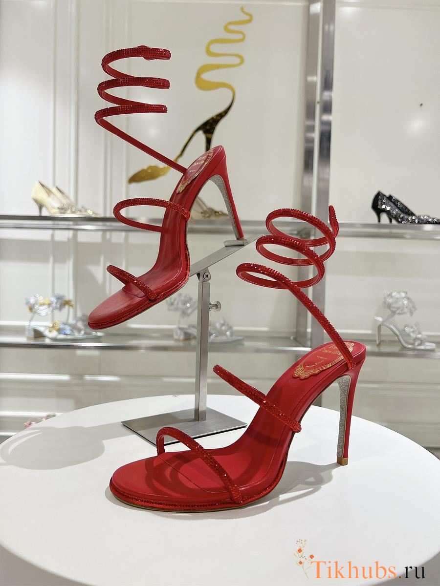 Rene Caovilla Jewel Snake With Heel Red 10cm