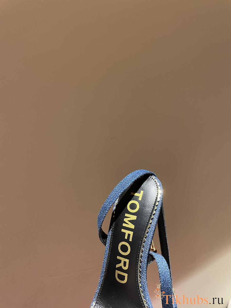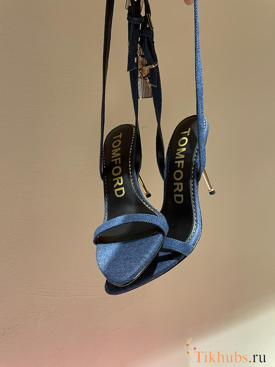 Tom Ford Padlock Leather Sandals Heels Blue Denim 10.5cm
