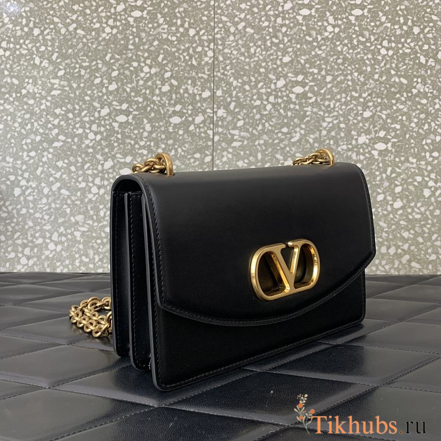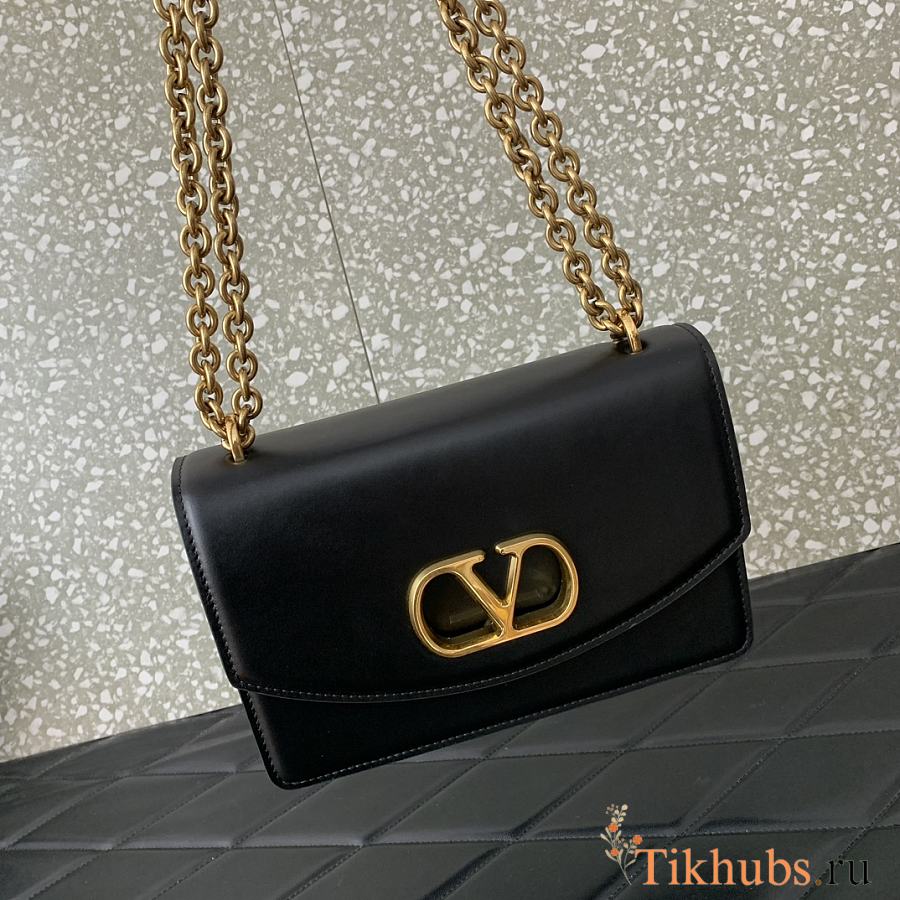 Valentino Garavani Leather Vain Black Shoulder Bag 24x16x8cm