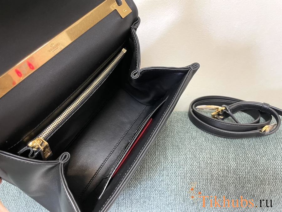 Valentino Garavani Alltime Grainy Calfskin Shoulder Bag Black 23.5 x 18 x 8 cm