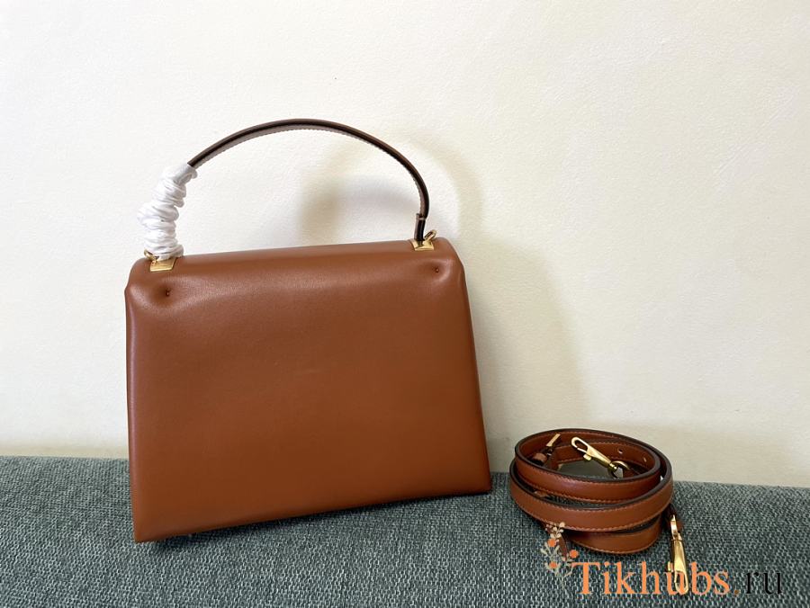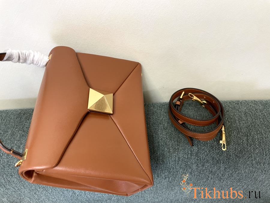Valentino Garavani One Stud Flap Leather Brown Handbag 24x18x10cm