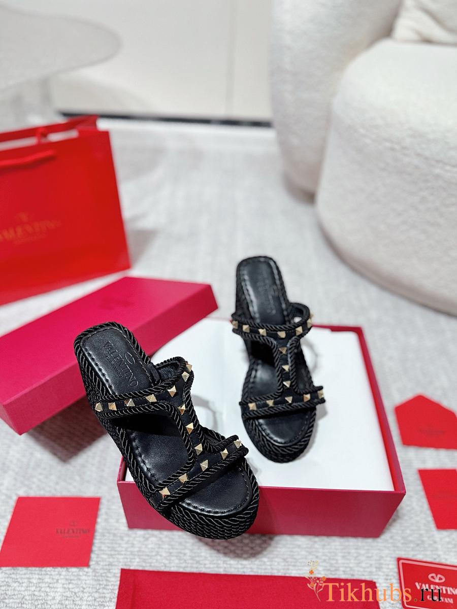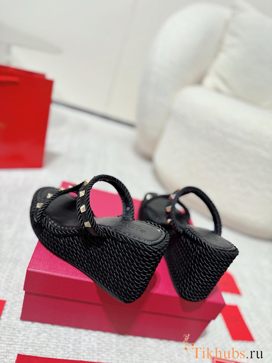 Valentino Garavani Rockstud Espadrille Platform Wedge Black 10cm