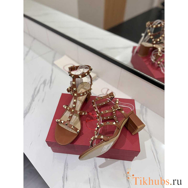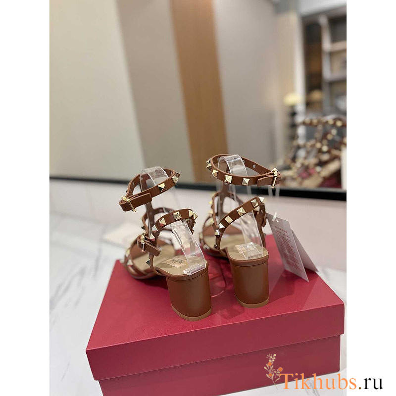 Valentino Garavani Rockstud Heeled Sandals Brown 6cm