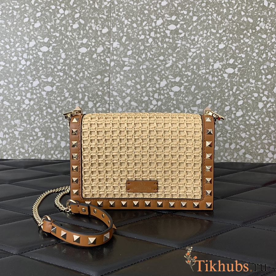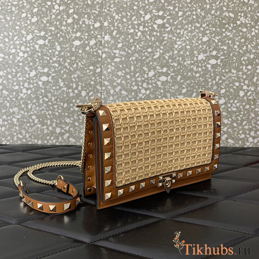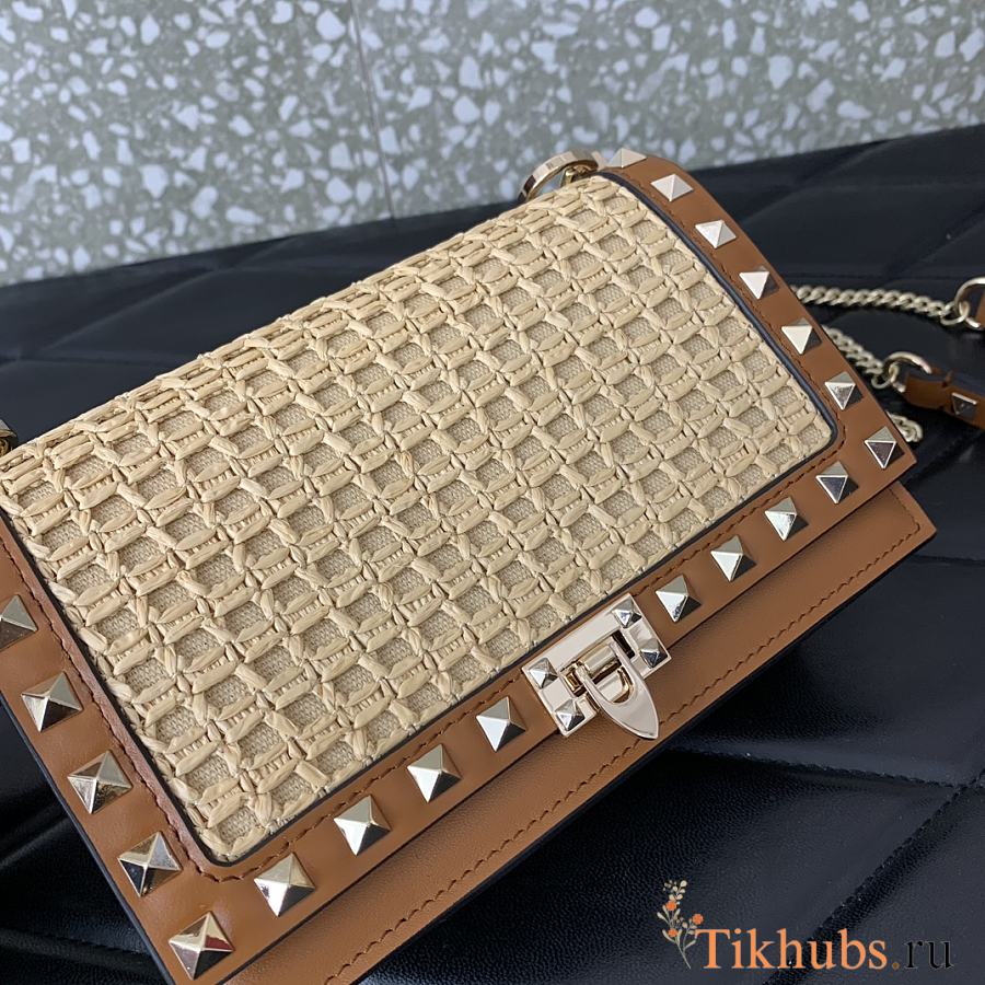 Valentino Garavani Rockstud Raffia Effect Pouch 18.5x12x4cm