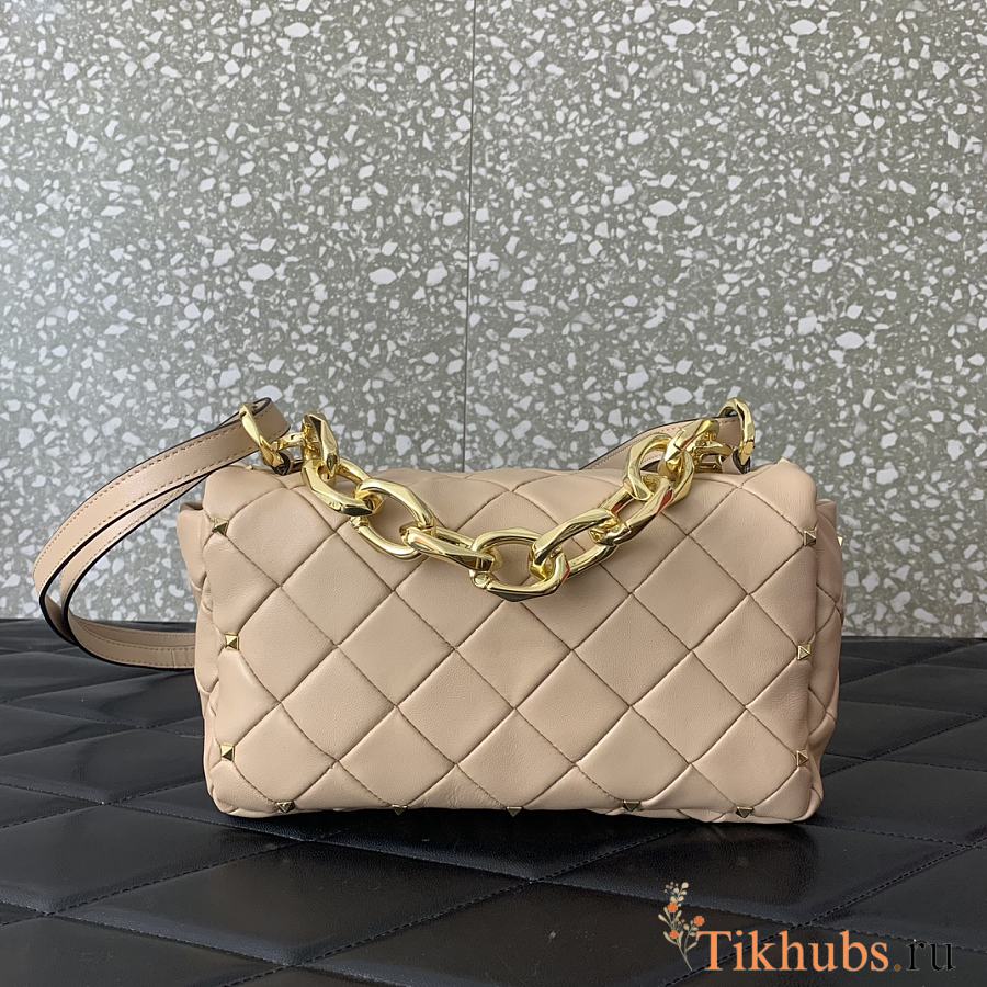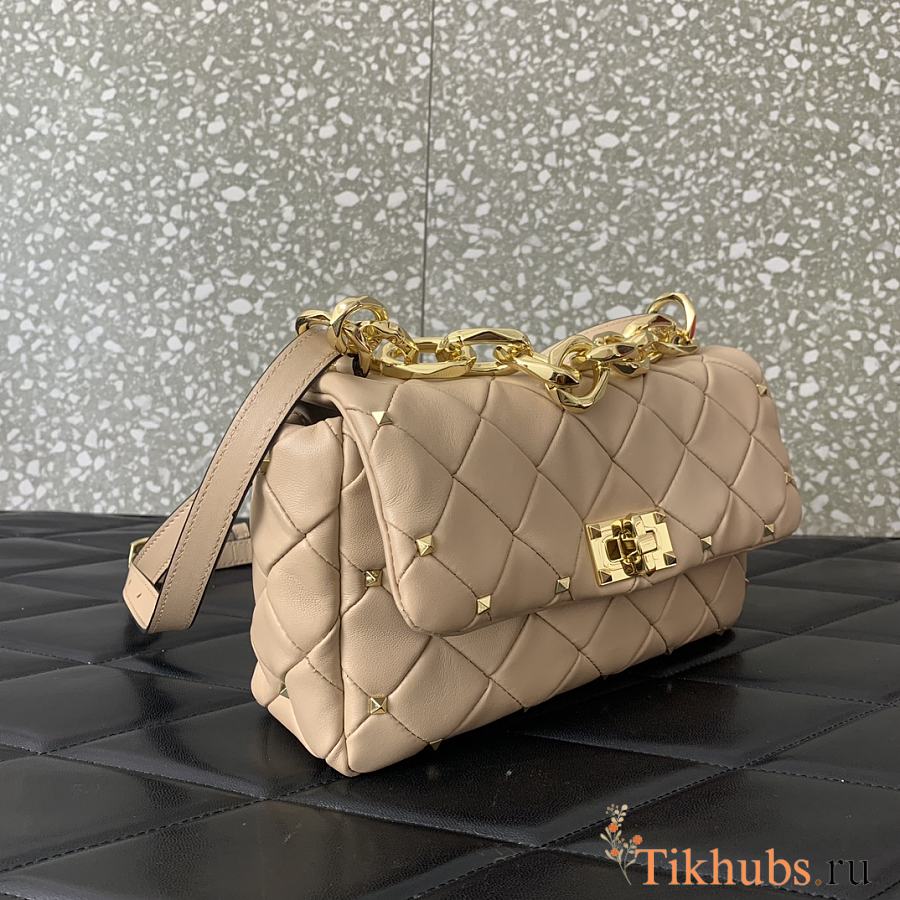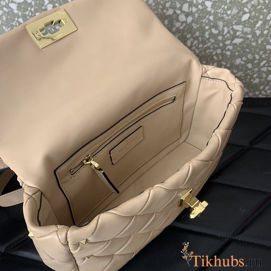 Valentino Garavani Rockstud Spike Nappa Bag Beige 23x17x7cm