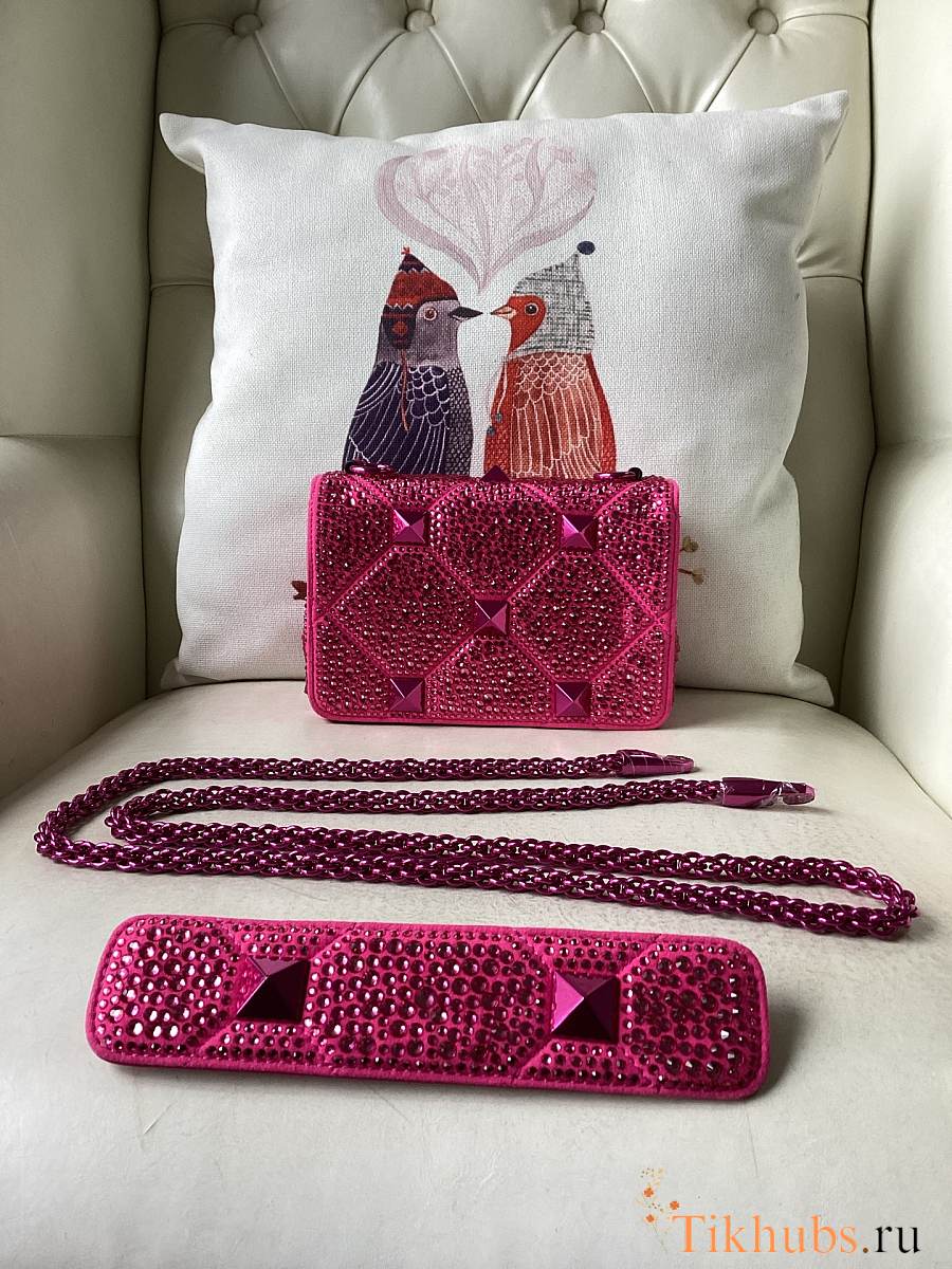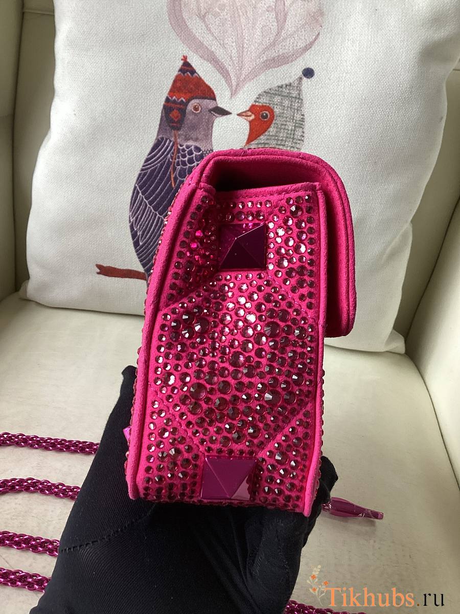 Valentino Garavani Small Roman Stud Sparkling Pink Bag 19x13x6cm