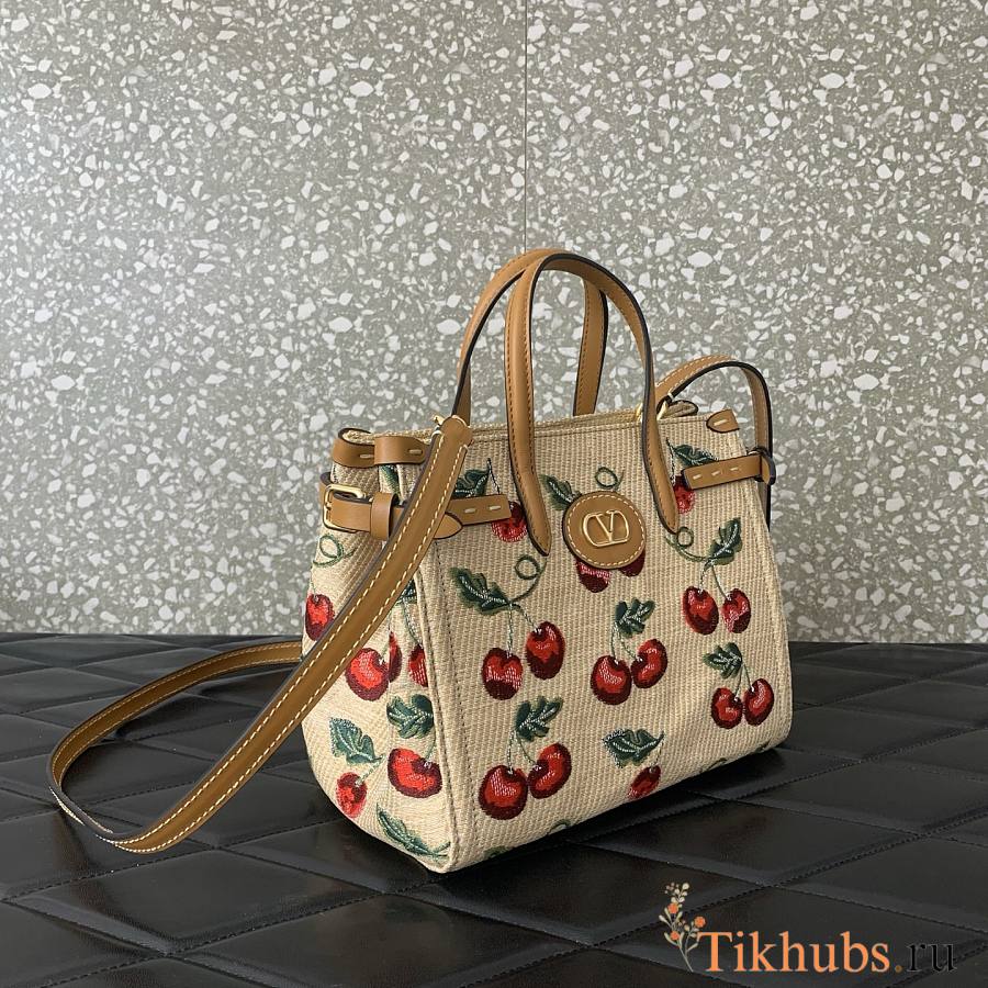 Valentino Garavani Small Shopping Bag Raffia Cherryfic 22x19x12cm