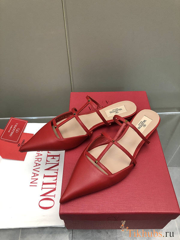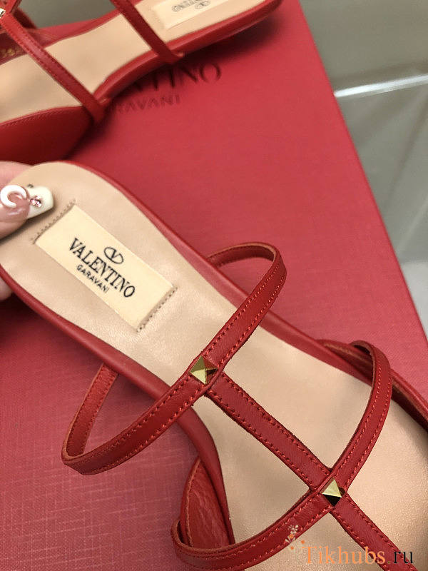 Valentino Garavani Smooth Leather Rockstud Red Wispy Mules