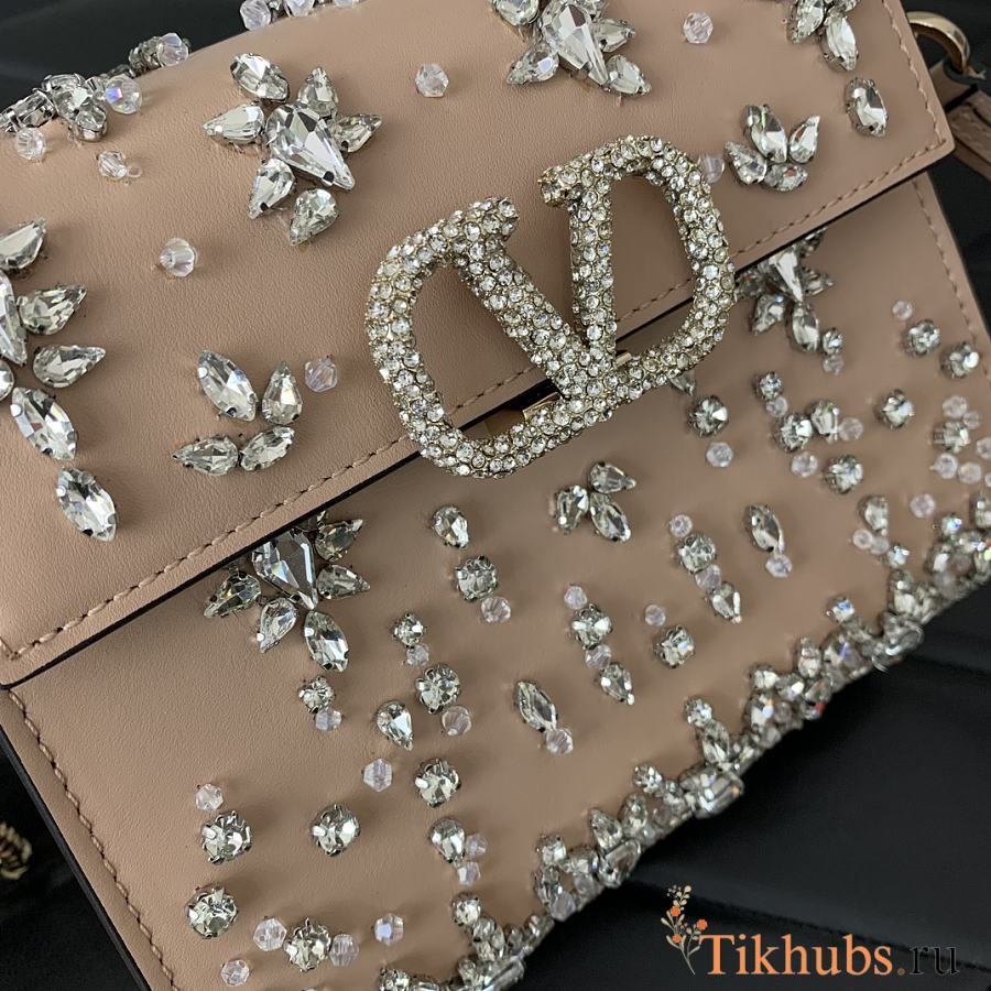 Valentino Garavani Vsling Mini Handbag Rose Pink Crystal 19x13x9cm