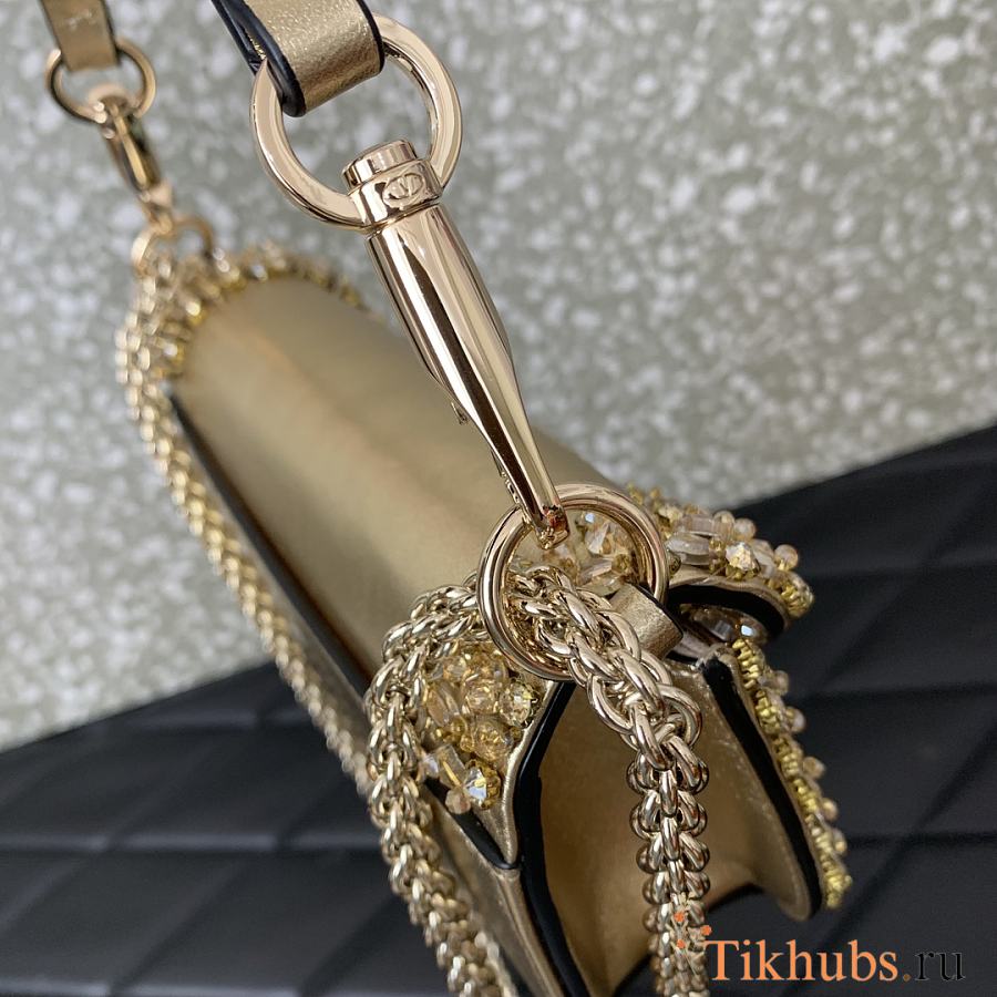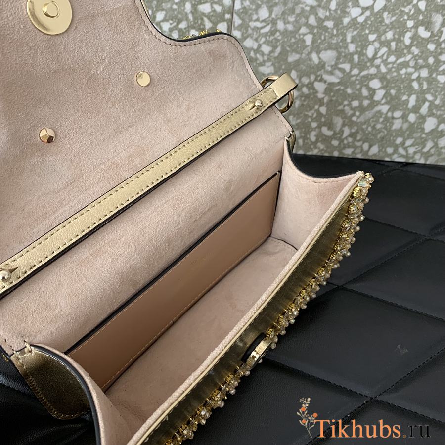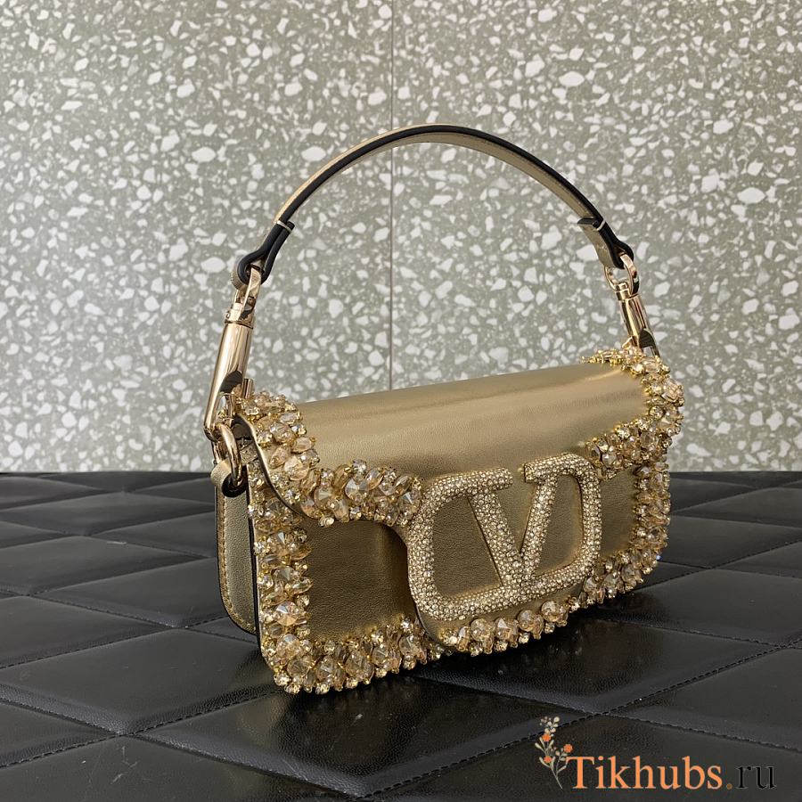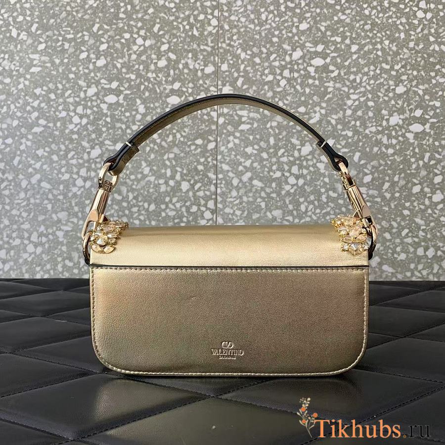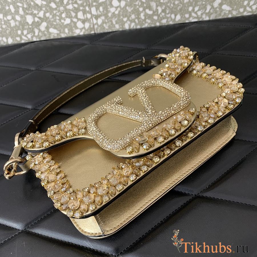 Valentino Locò Small Jeweled Gold Leather Shoulder Bag 19x10.5x5cm