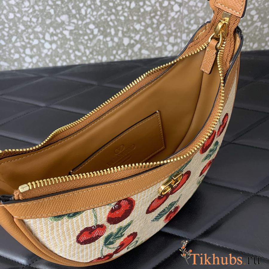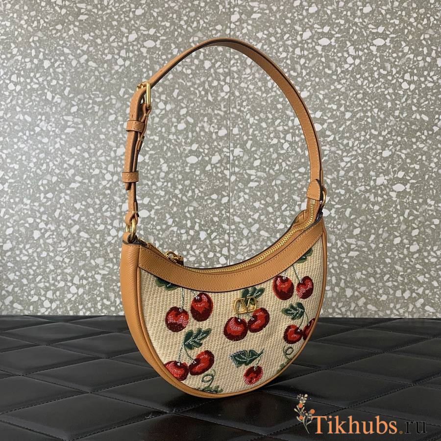 Valentino Vlogo Mini Hobo Bag Raffia Cherryfic 20x12x4cm