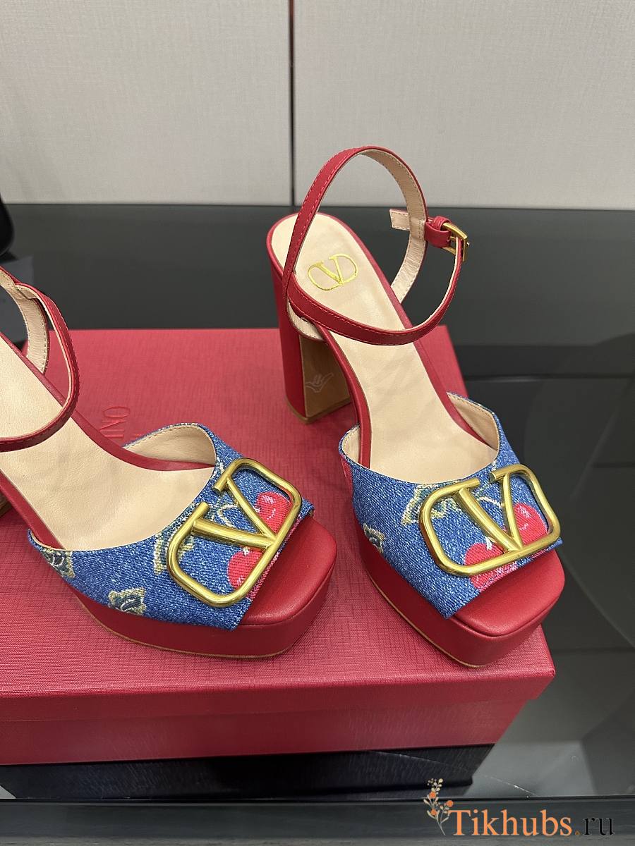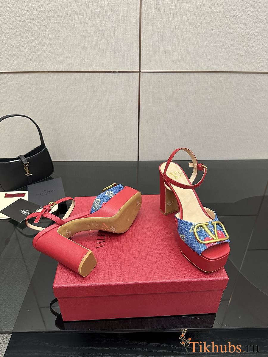 Valentino Vlogo Platform Denim Sandal Cherryfic 115mm