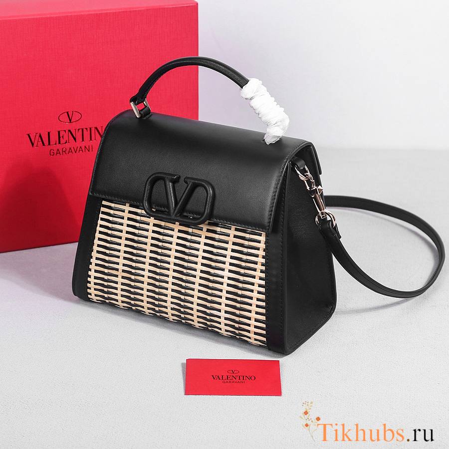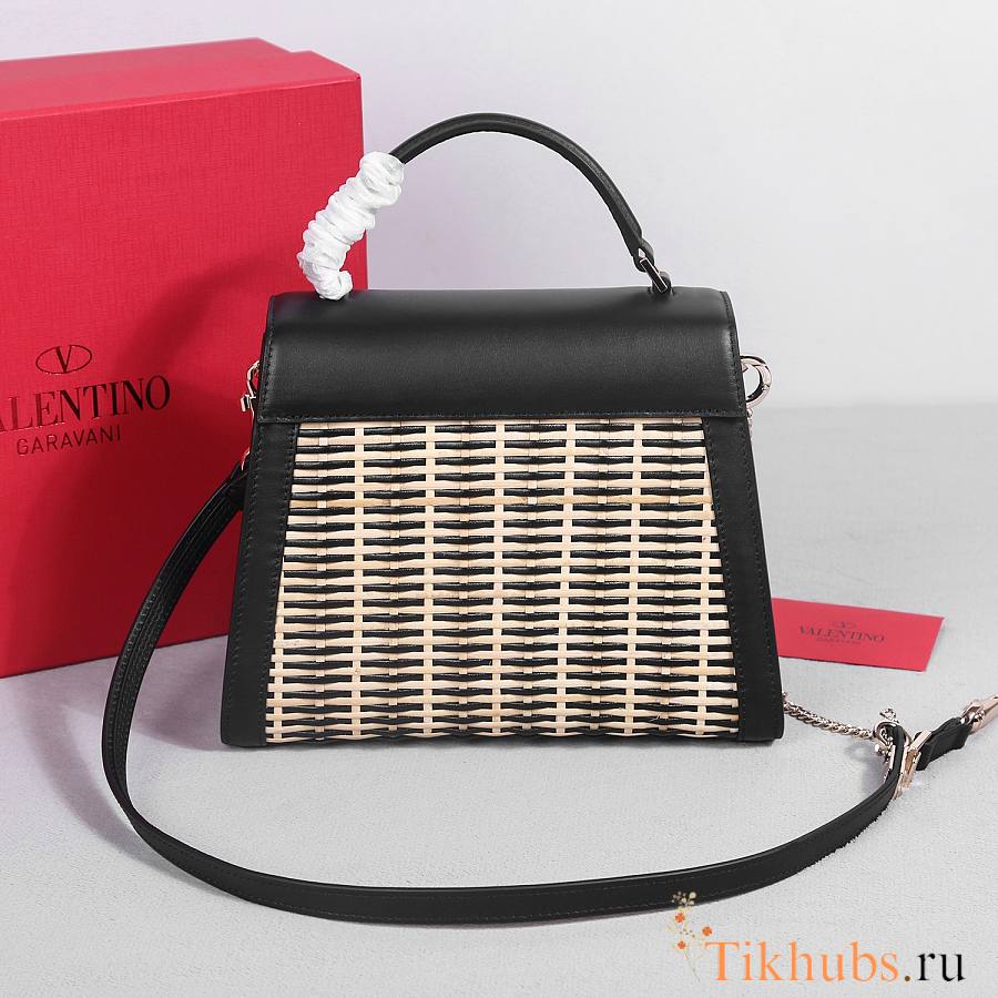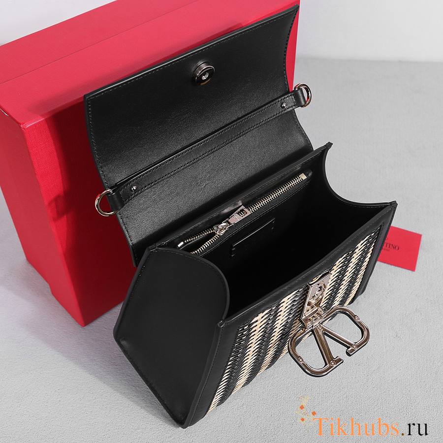 Valentino Vsling Raffia Leather Shoulder Bag Black 25x15x11cm
