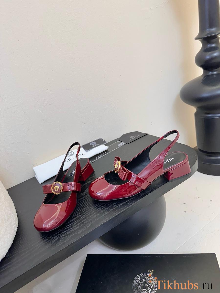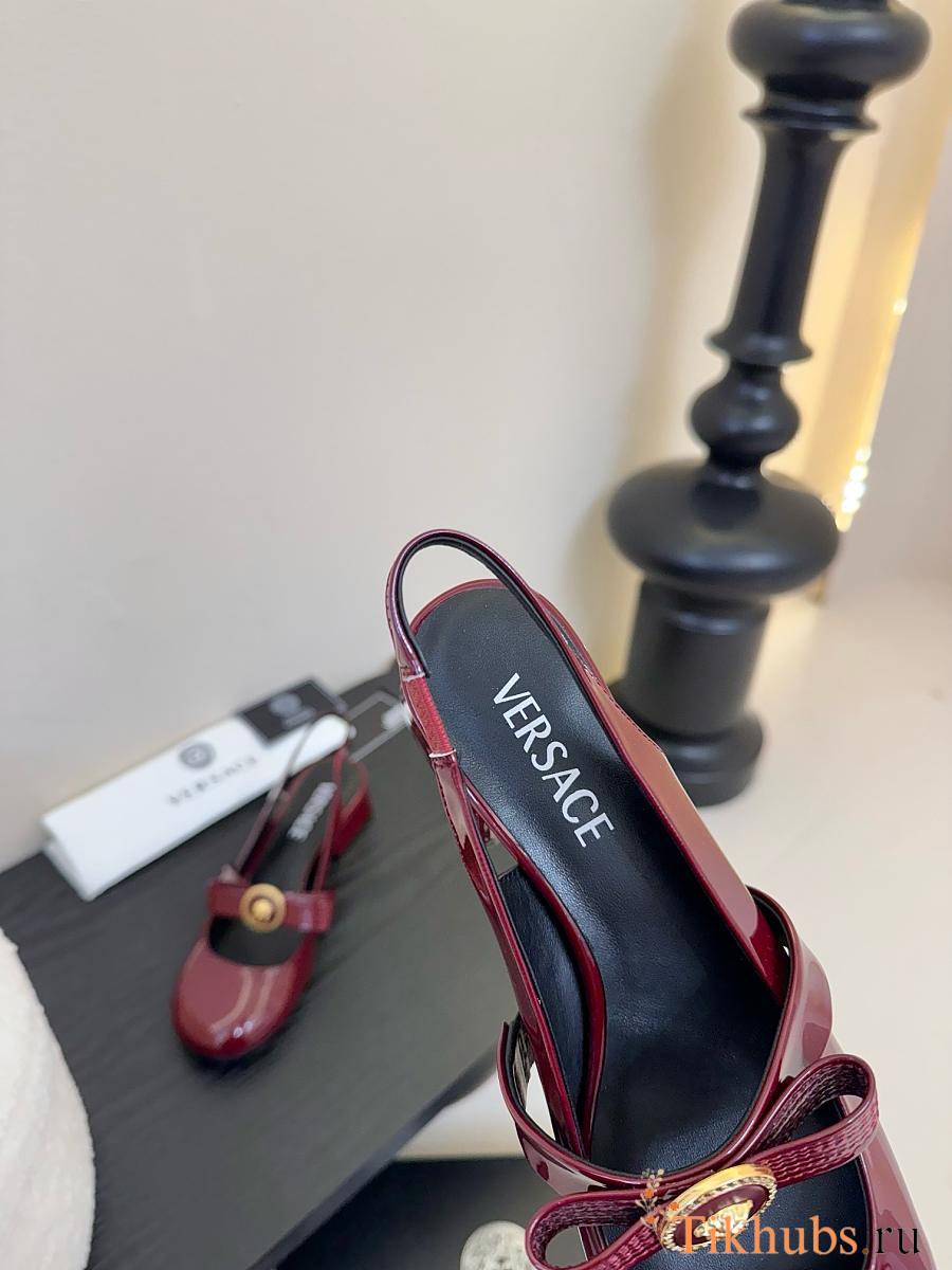 Versace Gianni Ribbon Patent Slingback Pumps Red 35mm