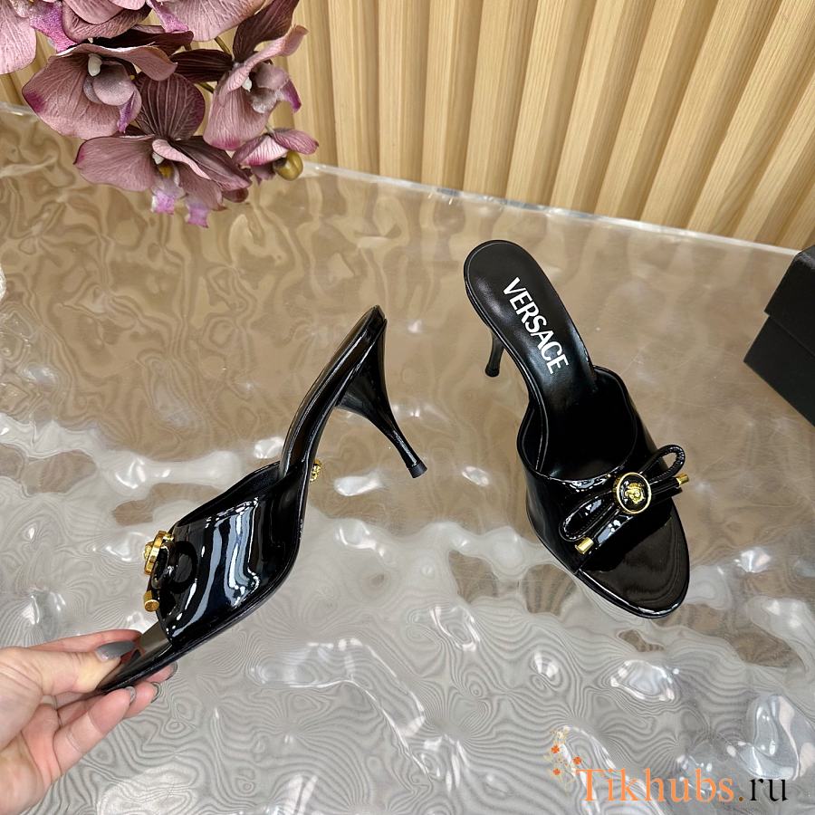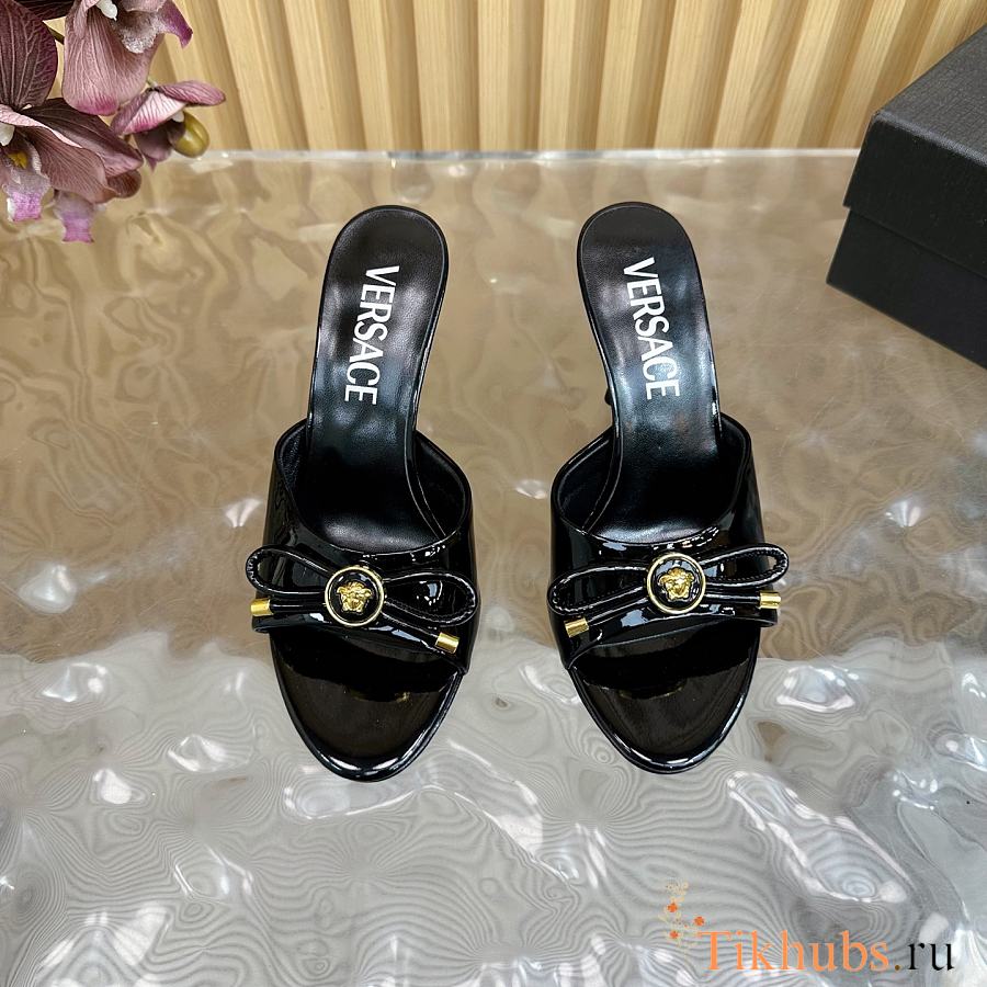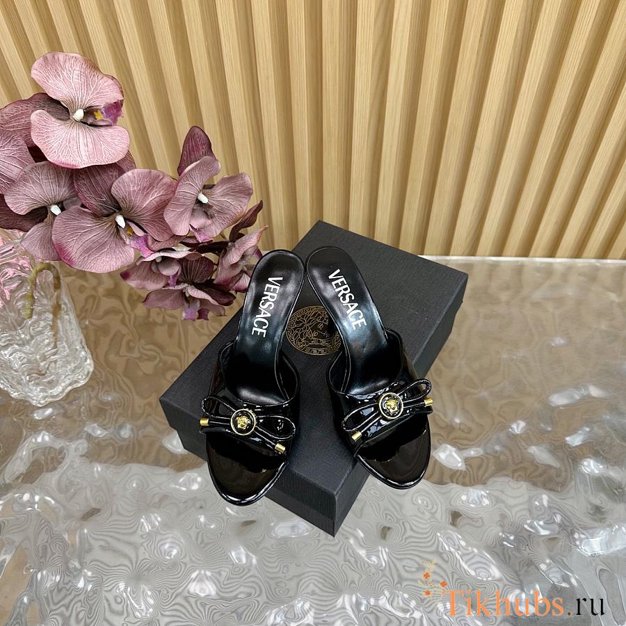 Versace Opera Bow Patent Mules Black 85 mm