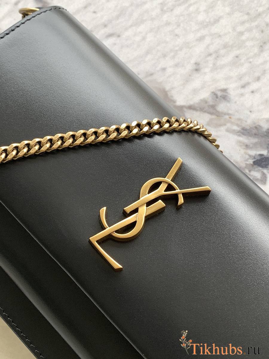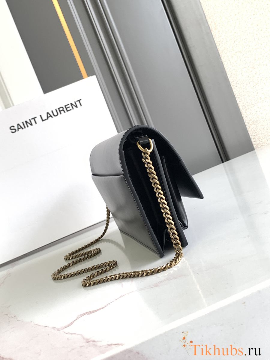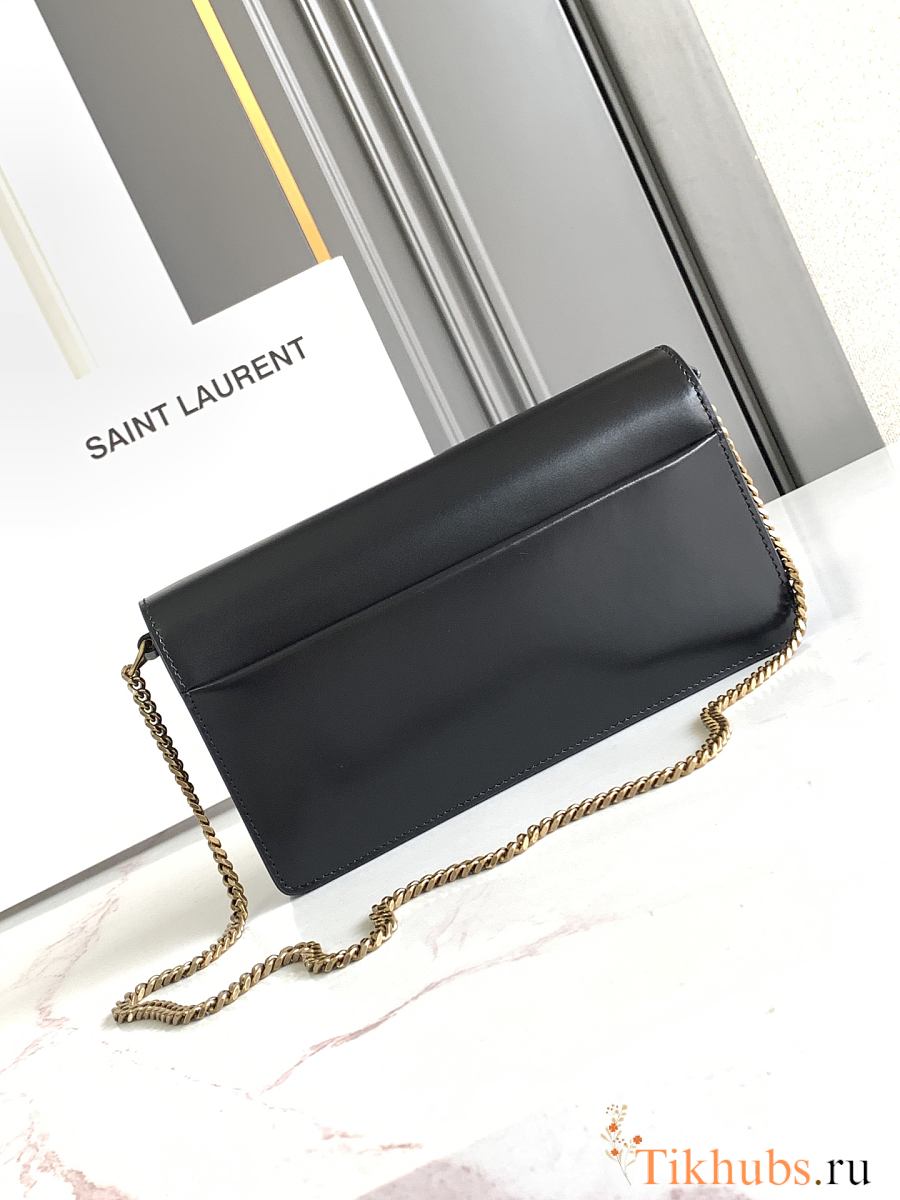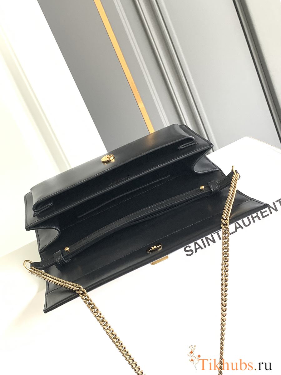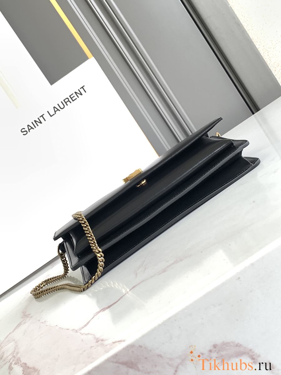 YSL Black Sunset Foldover Top Clutch Bag 22x12x3.5cm