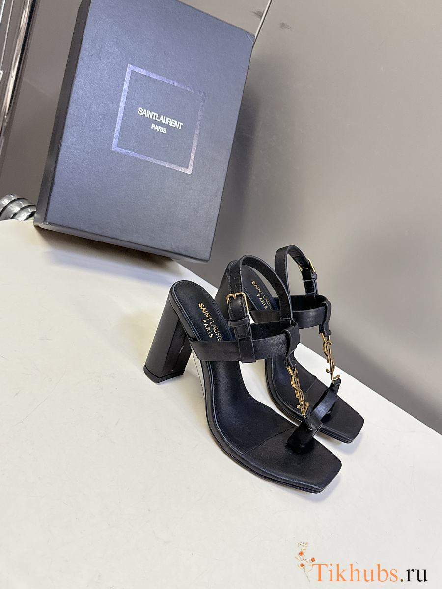 YSL Cassandra 75 Leather Sandals Black 7.5cm