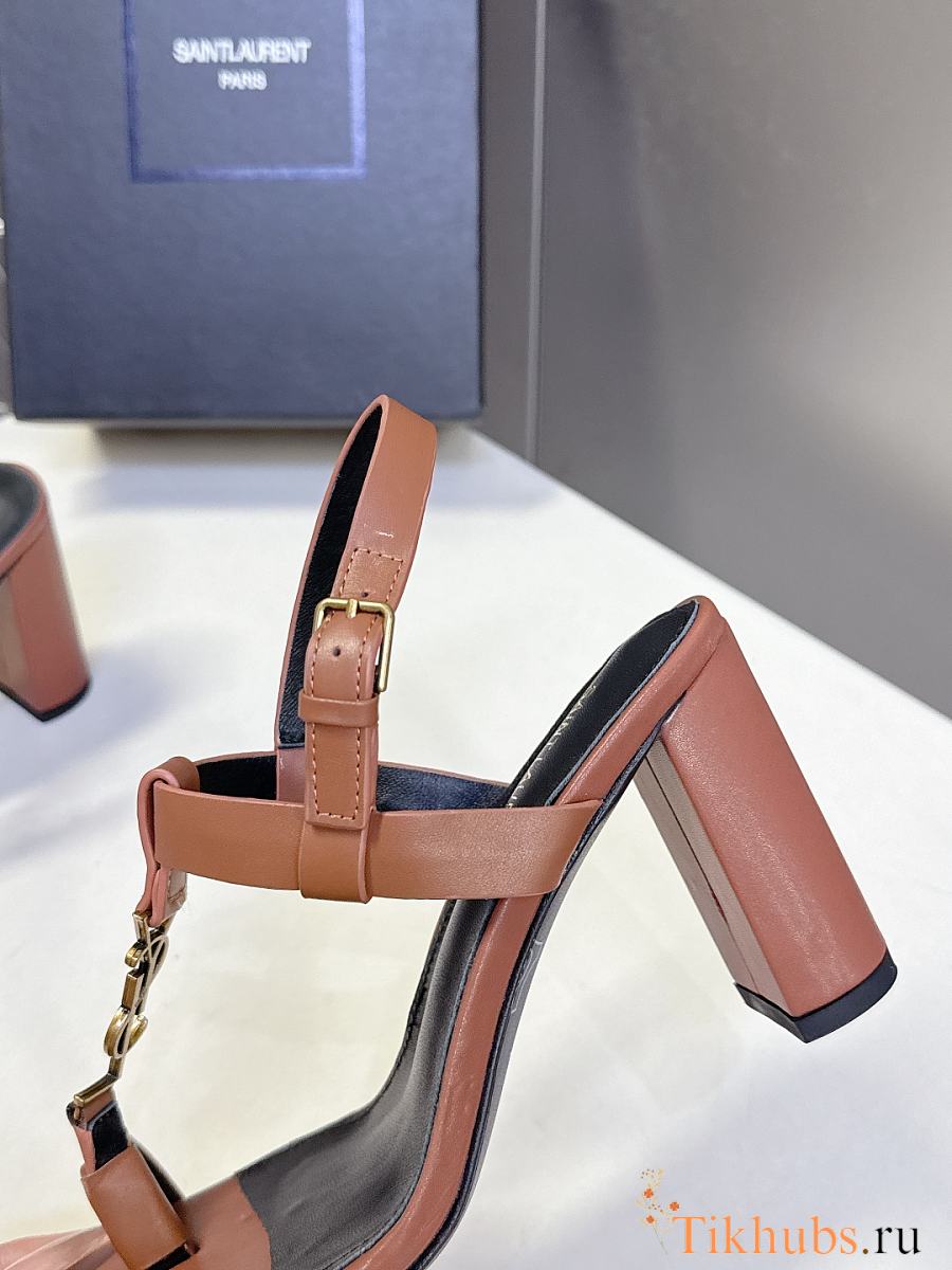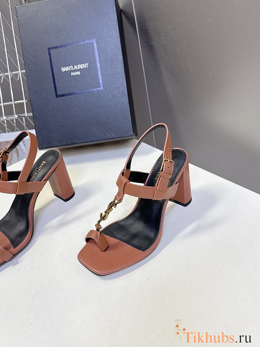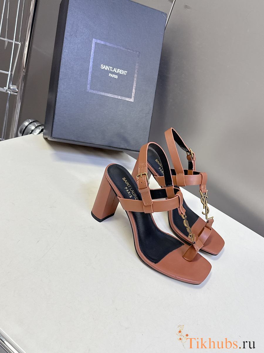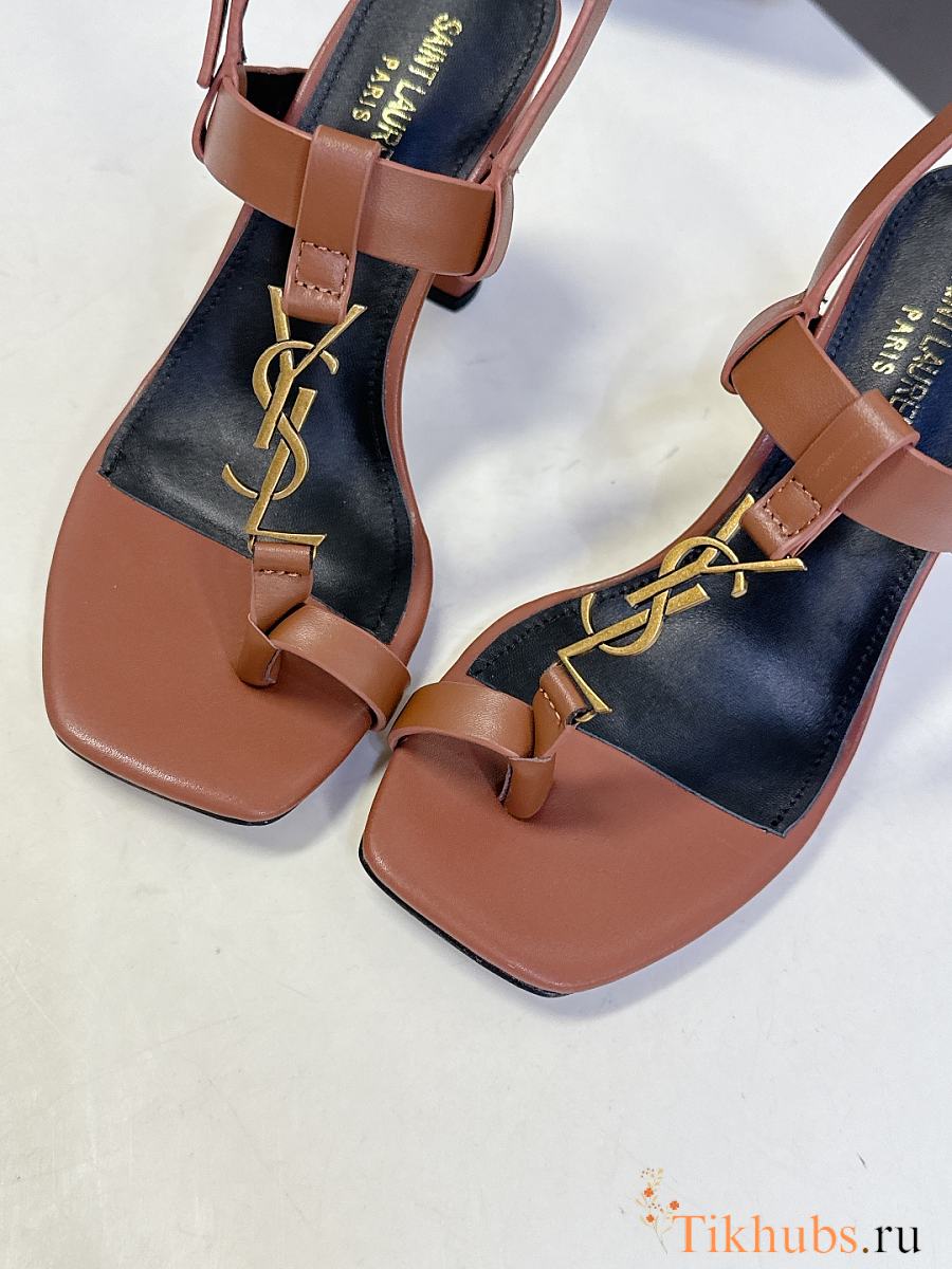 YSL Cassandra 75 Leather Sandals Brown 7.5cm