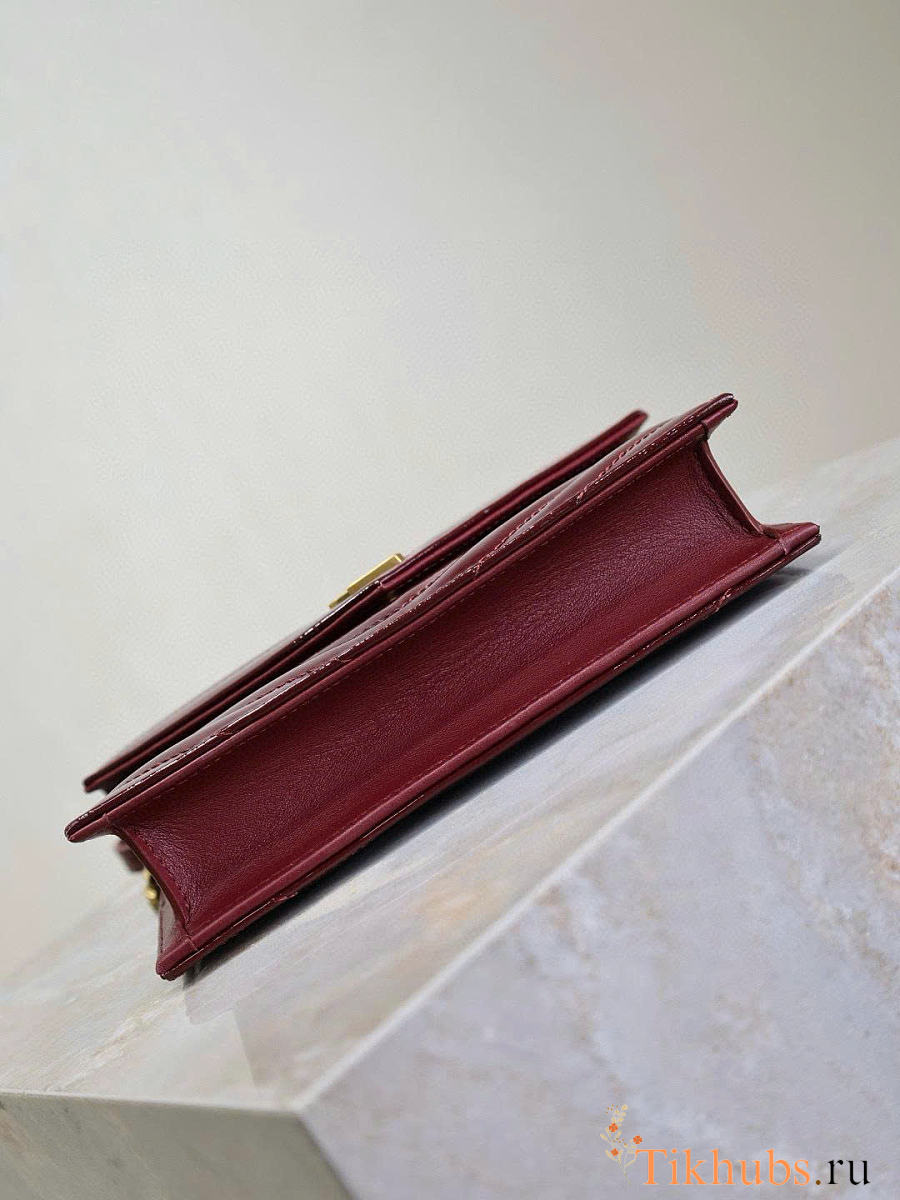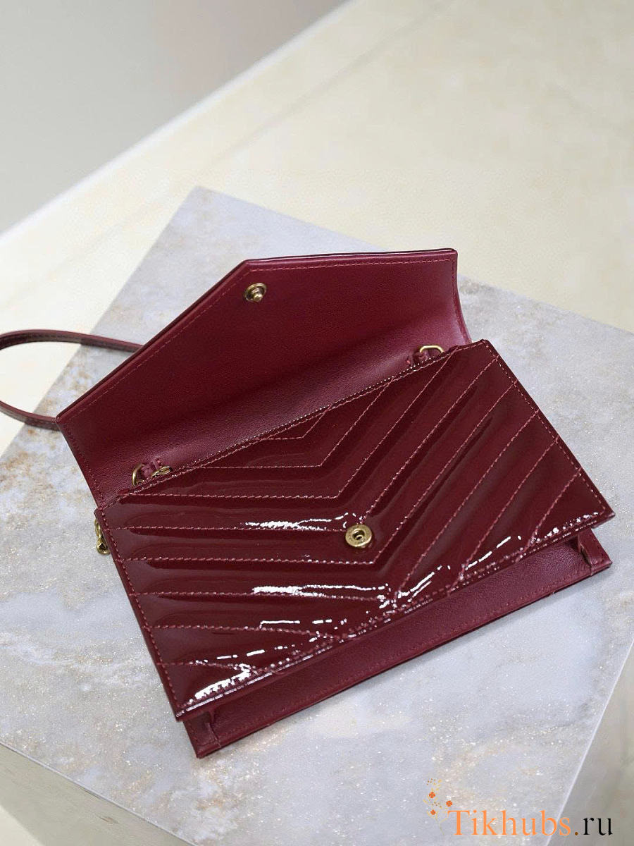 YSL Cassandre Envelope Chain Wallet Patent Red Wine 19x12.5x3.5cm