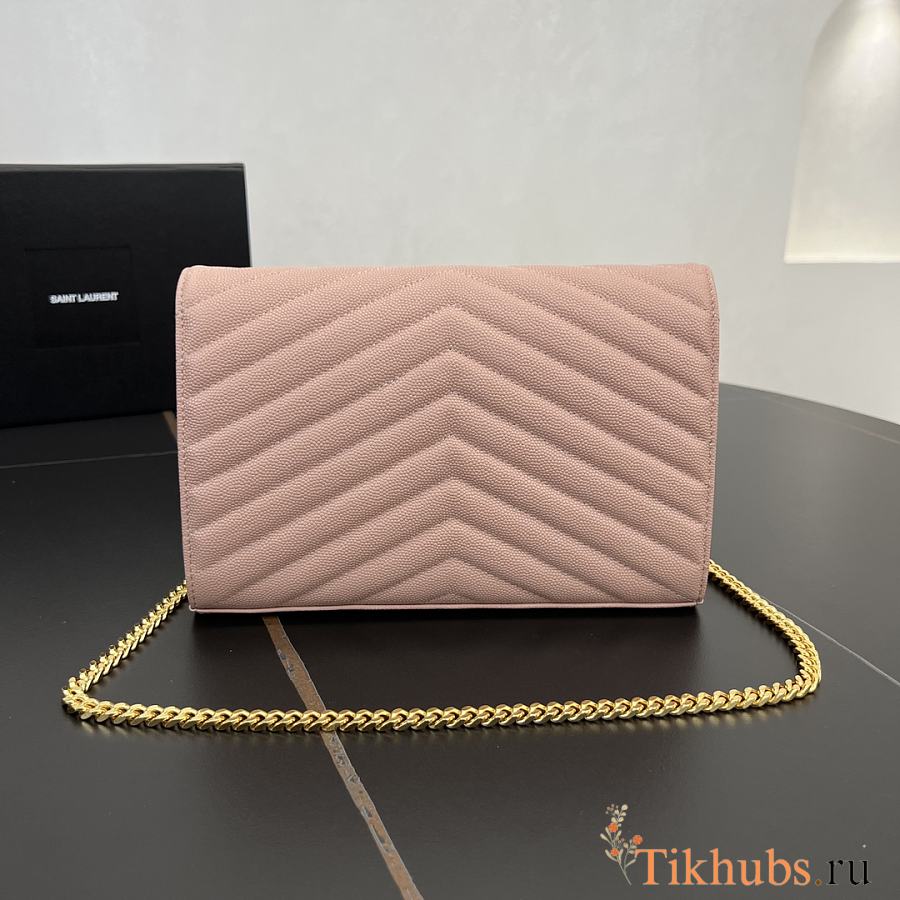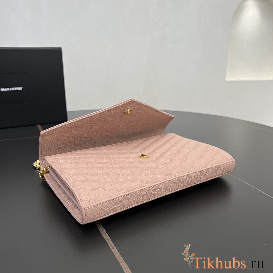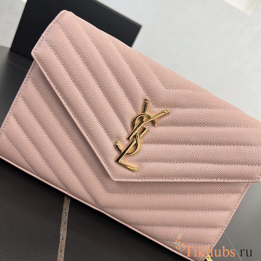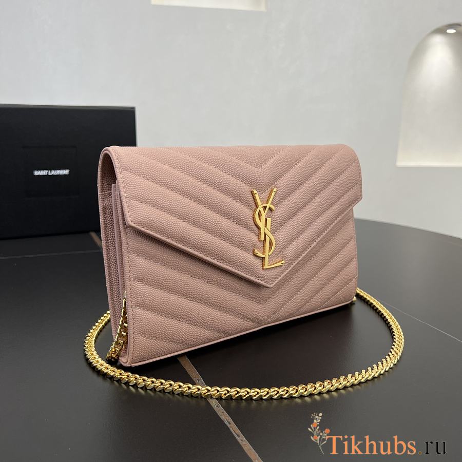 YSL Envelope Chain Wallet Pink Gold Hardware 22.5x14x4cm