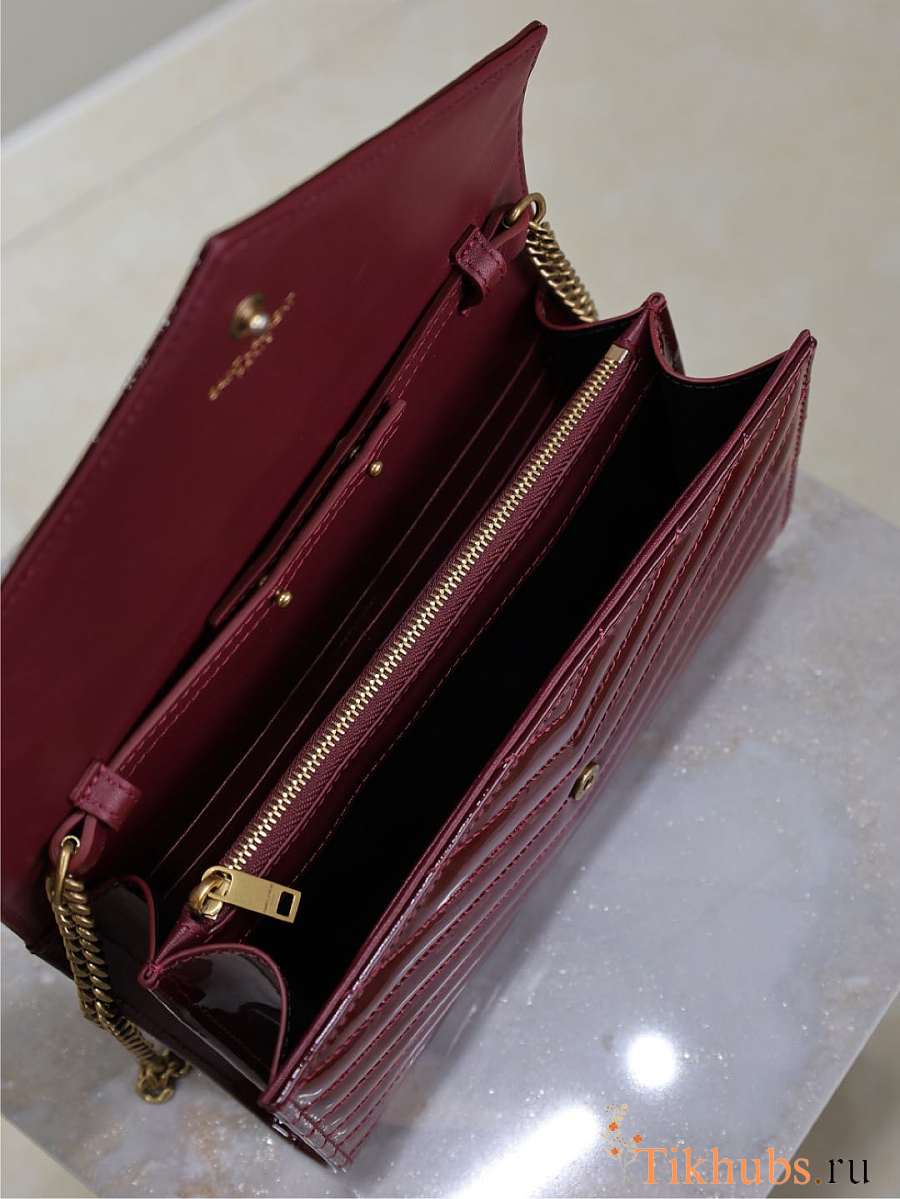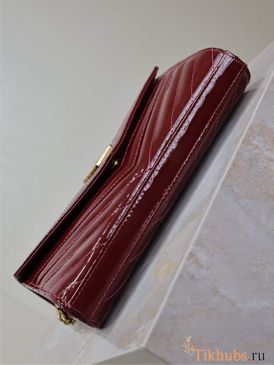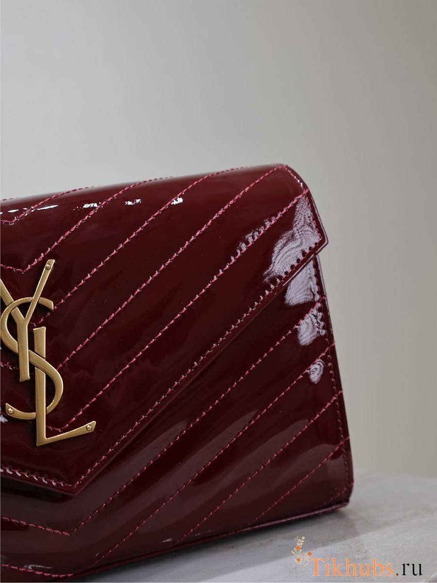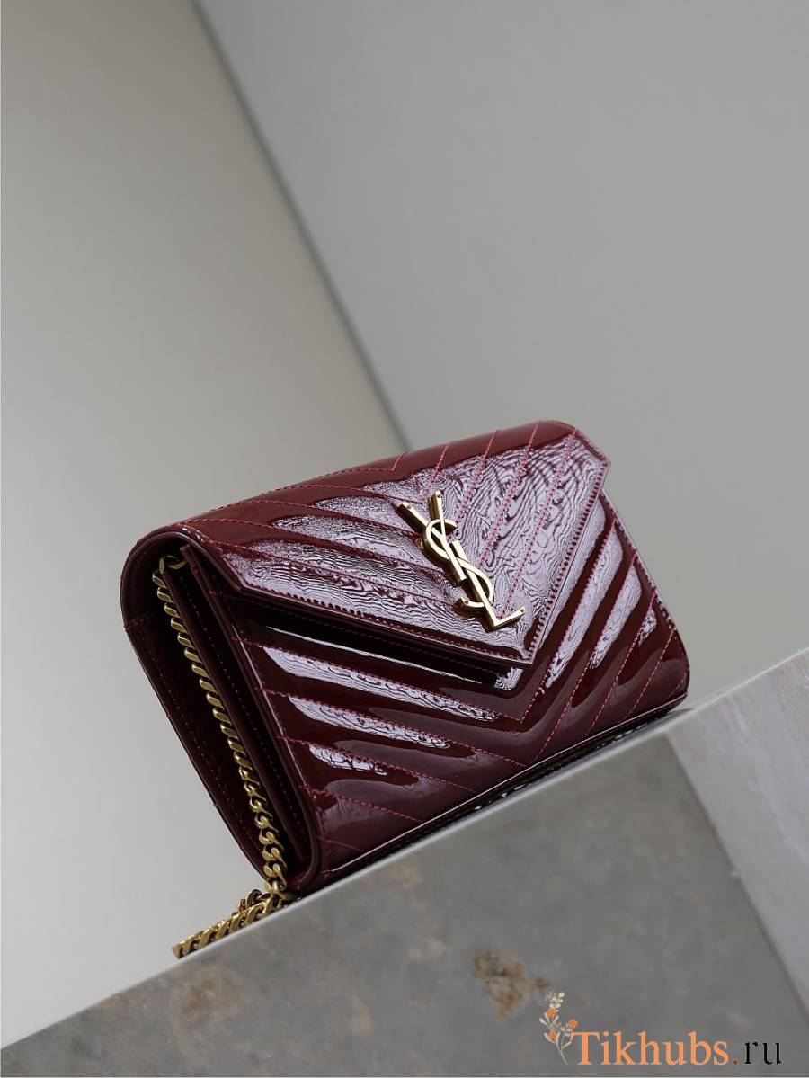 YSL Envelope Wallet Bag Red Wine Patent Gold 22.5x14x4cm