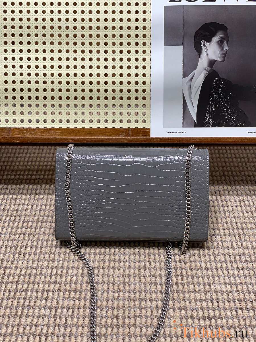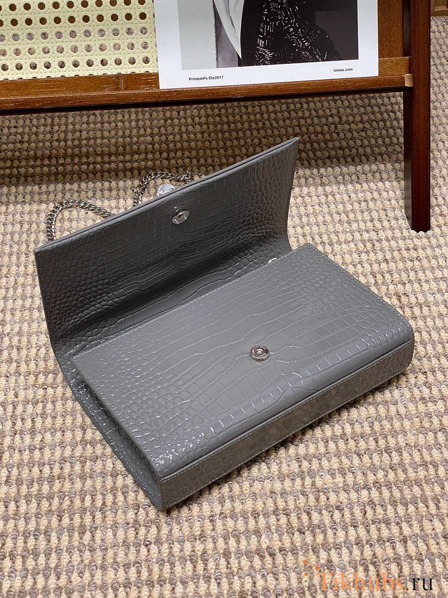 YSL Kate Bag Grey Silver Crocodile 24x14.5x5.5cm
