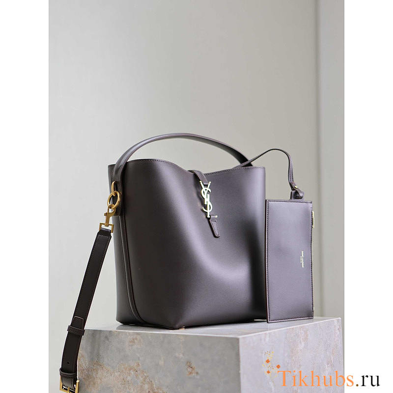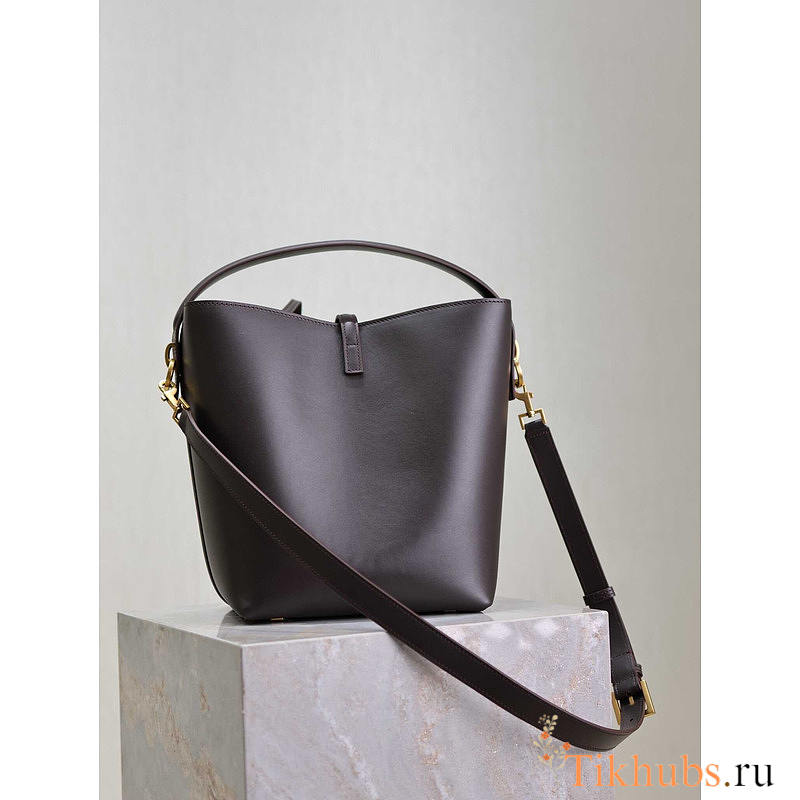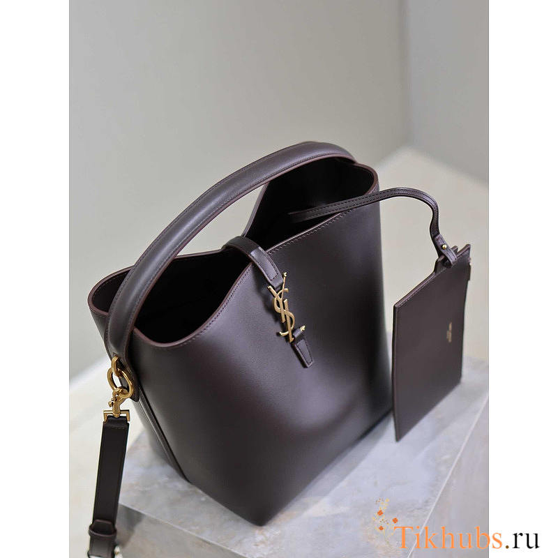 YSL LE 37 Shiny Leather Dark Brown 25x20x16cm