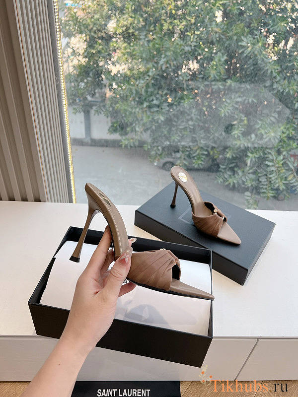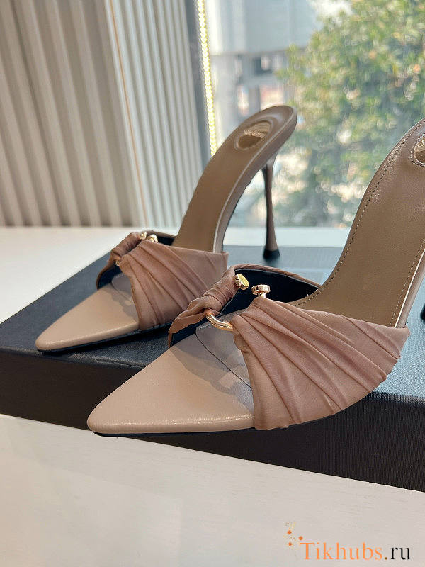 YSL Lola Ruched Nylon Ring Mule Sandals 10cm