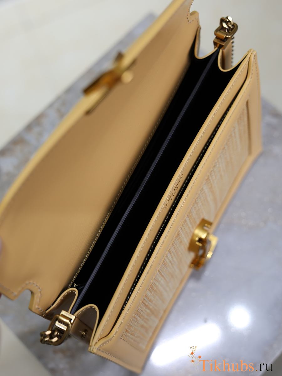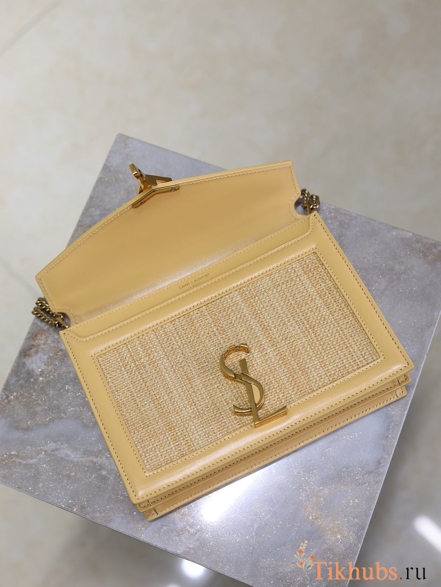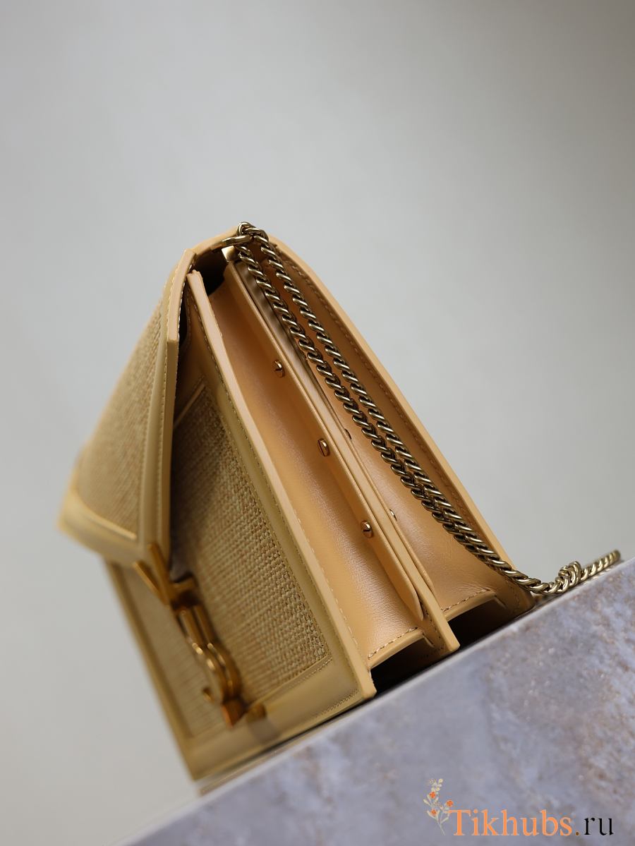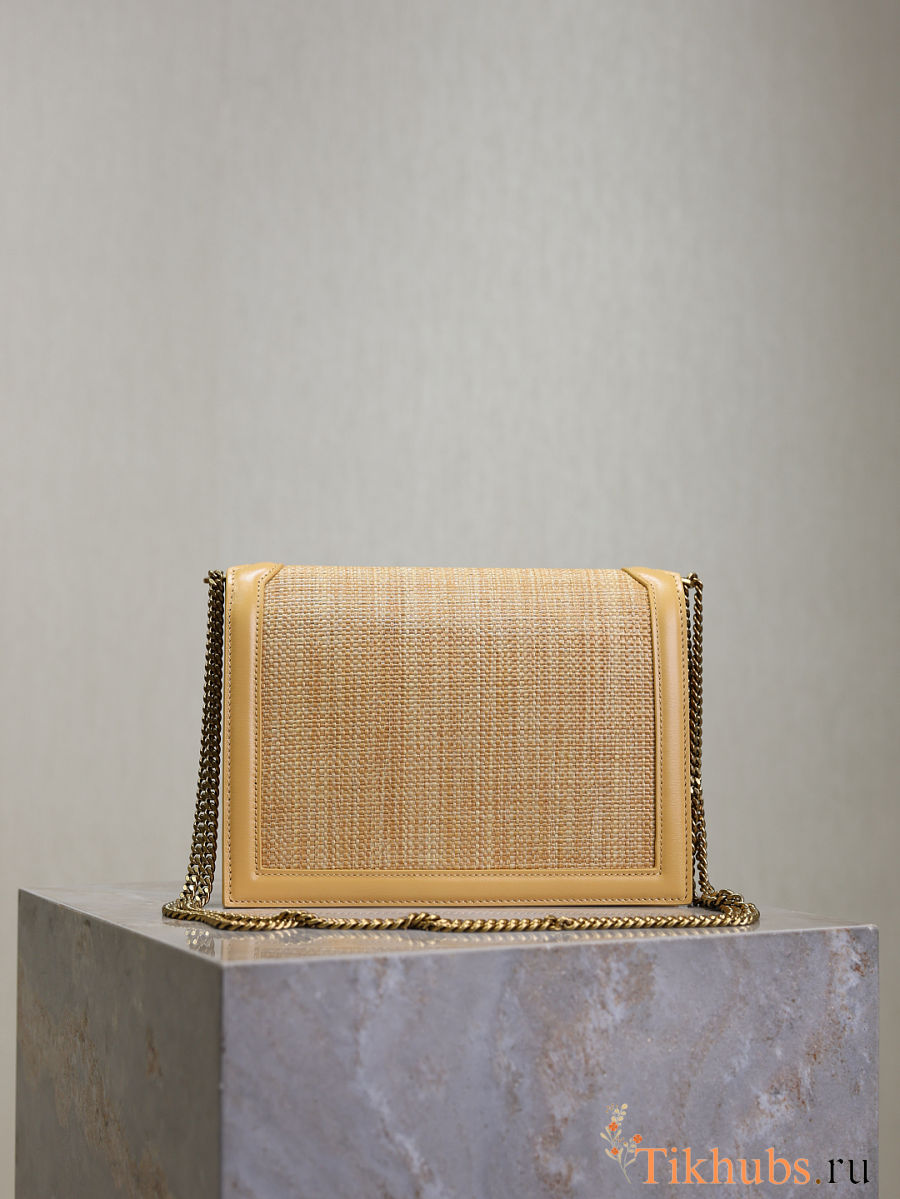 YSL Medium Raffia Cassandra Shoulder Bag Beige 22x17x5cm