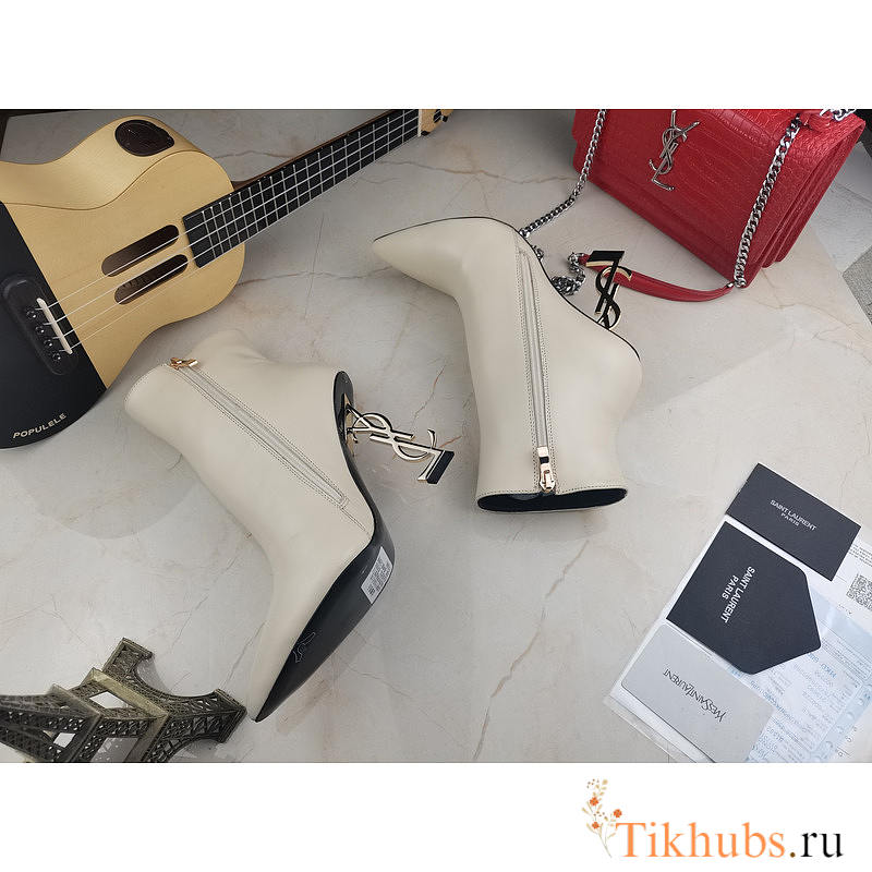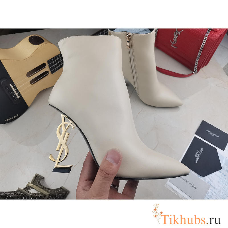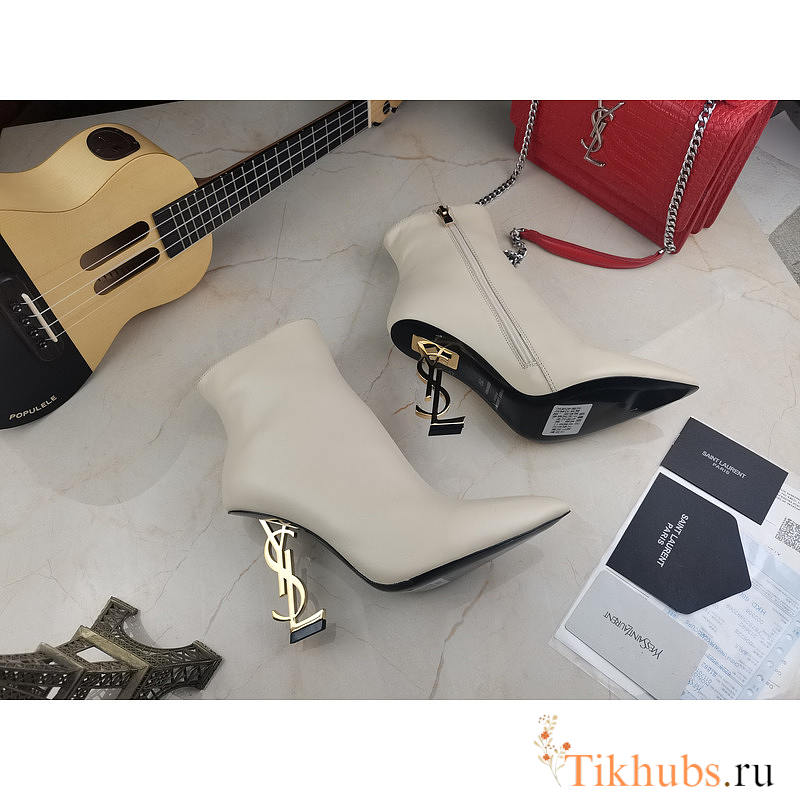 YSL Opyum White Heel Ankle Boots
