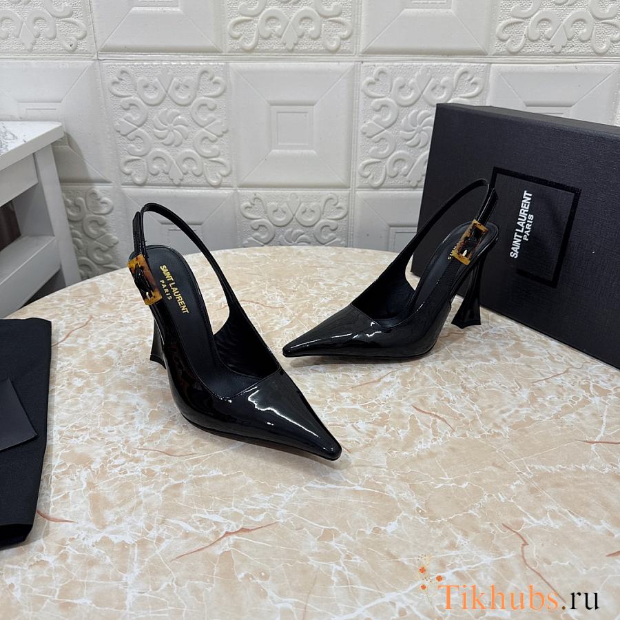 YSL Slingback Black Patent Heel 10cm