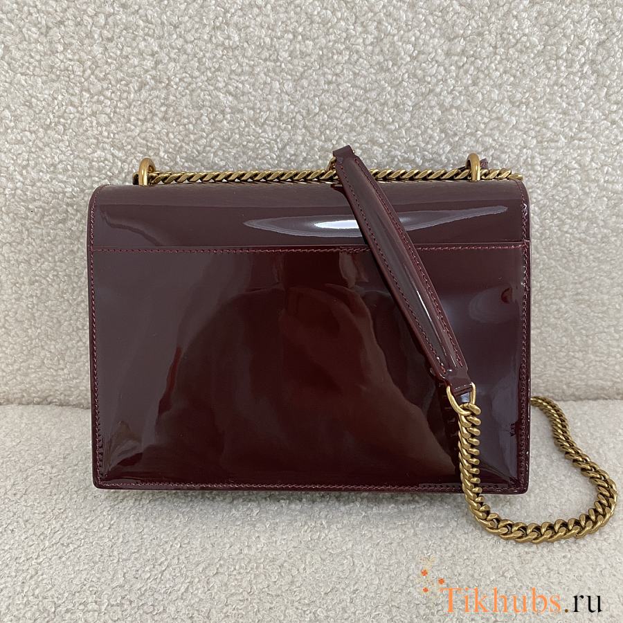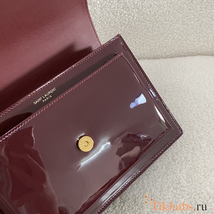 YSL Sunset Bag Patent Red Wine Gold 22x8x16cm