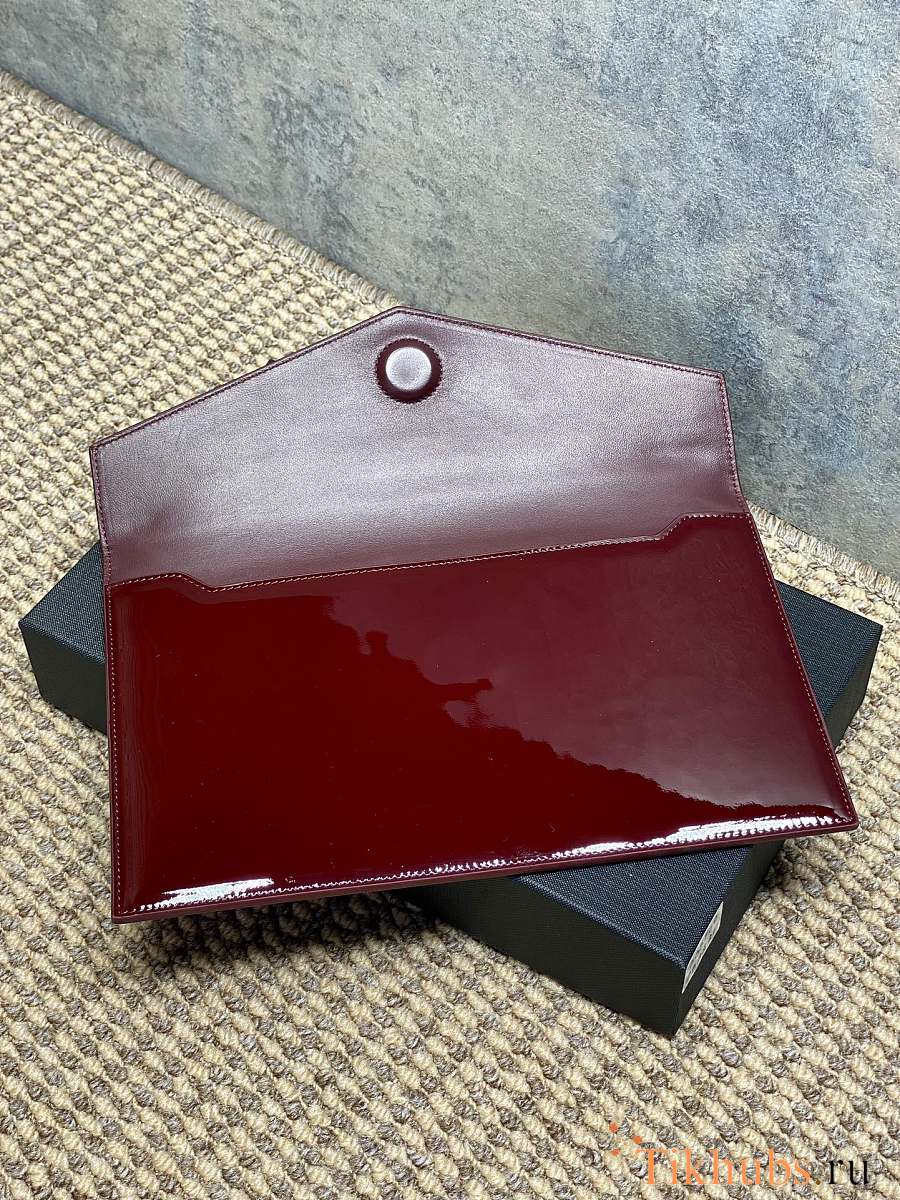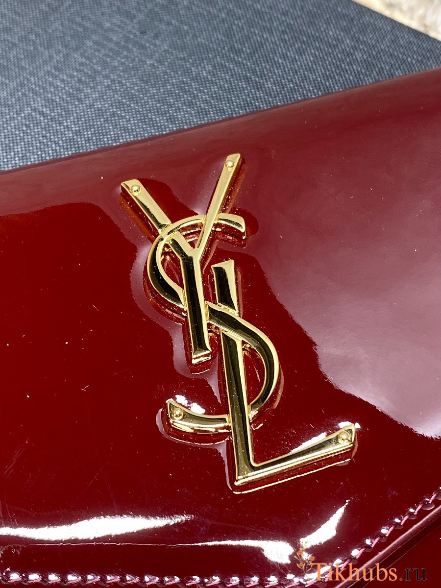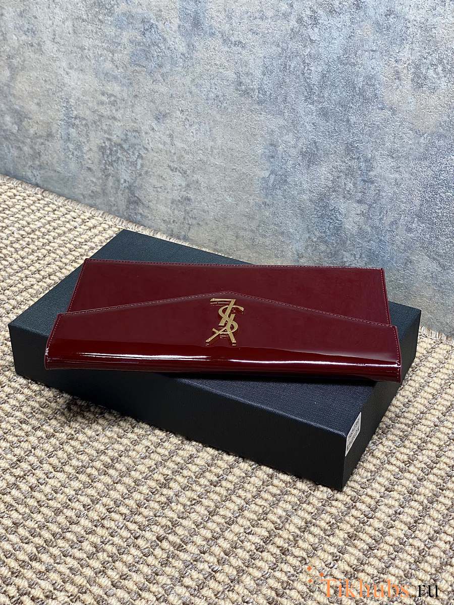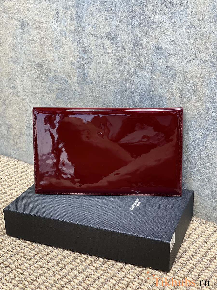 YSL Uptown Medium Leather Clutch Red Patent 27x16x2cm