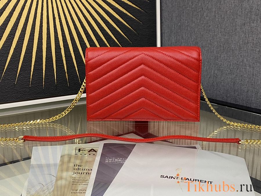 YSL Woc Wallet Chain Bag Red Gold 19cm